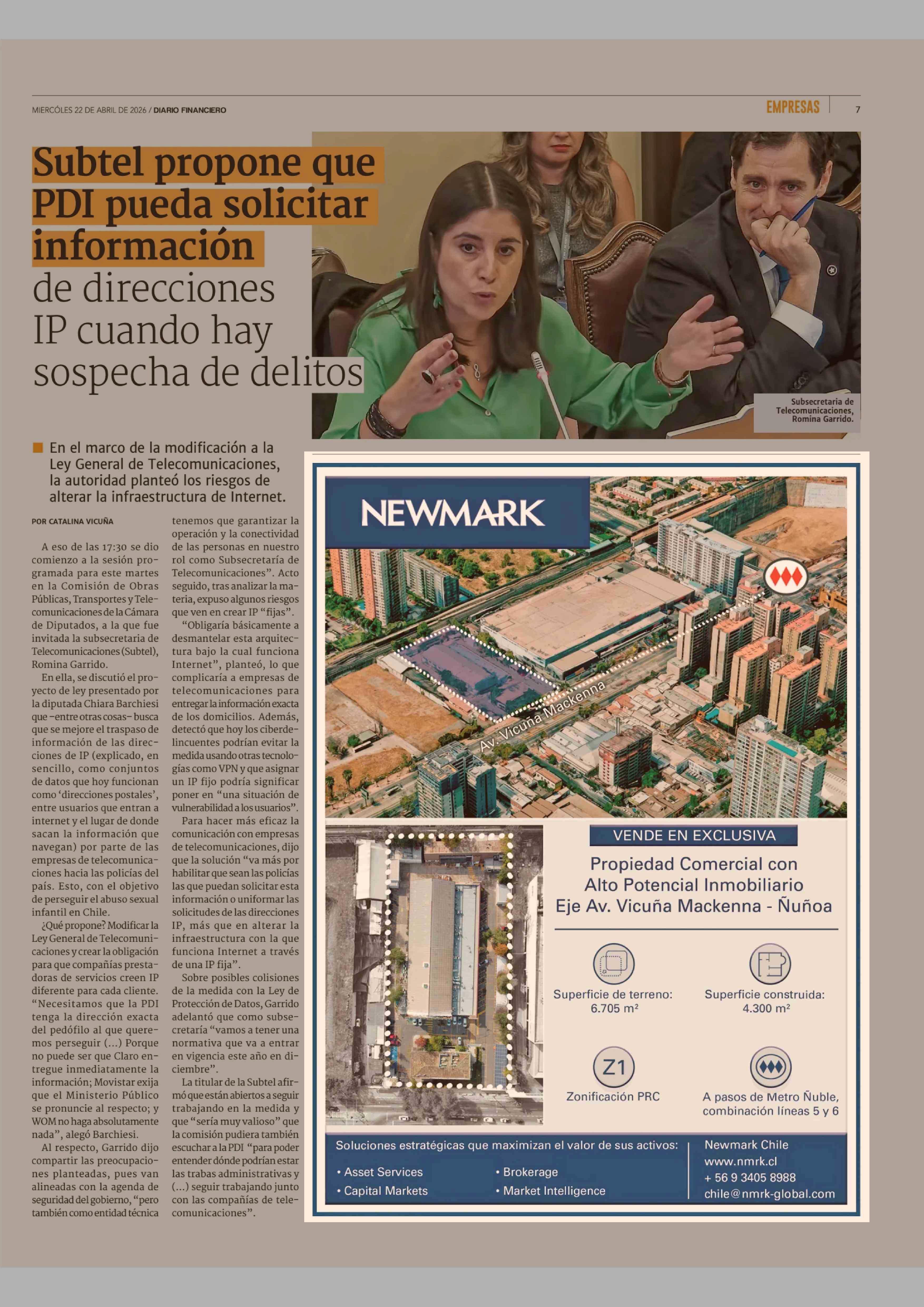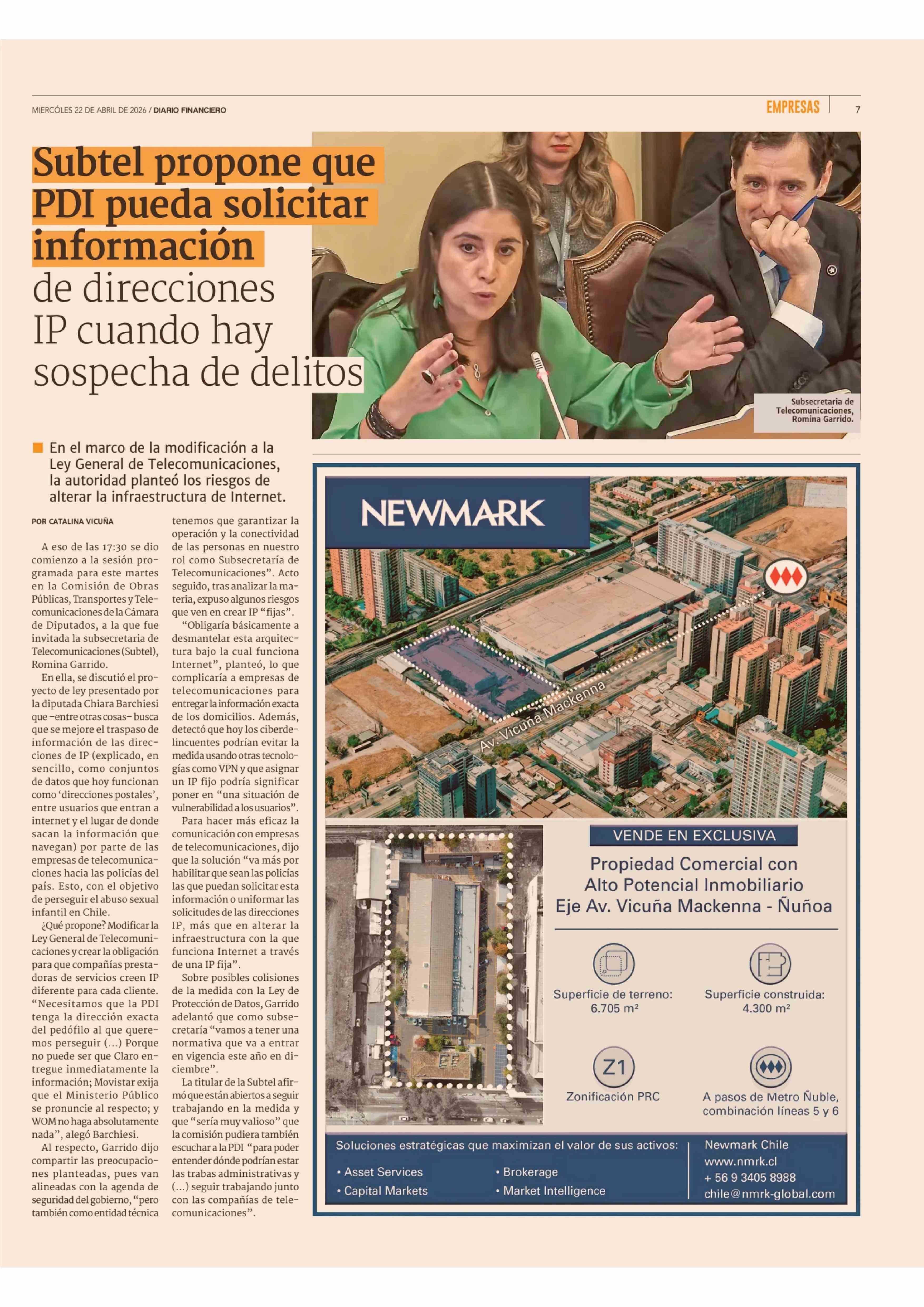 AVISO INMOBILIARIO: NEWMARK 22-04-2026 Diario Financiero |
