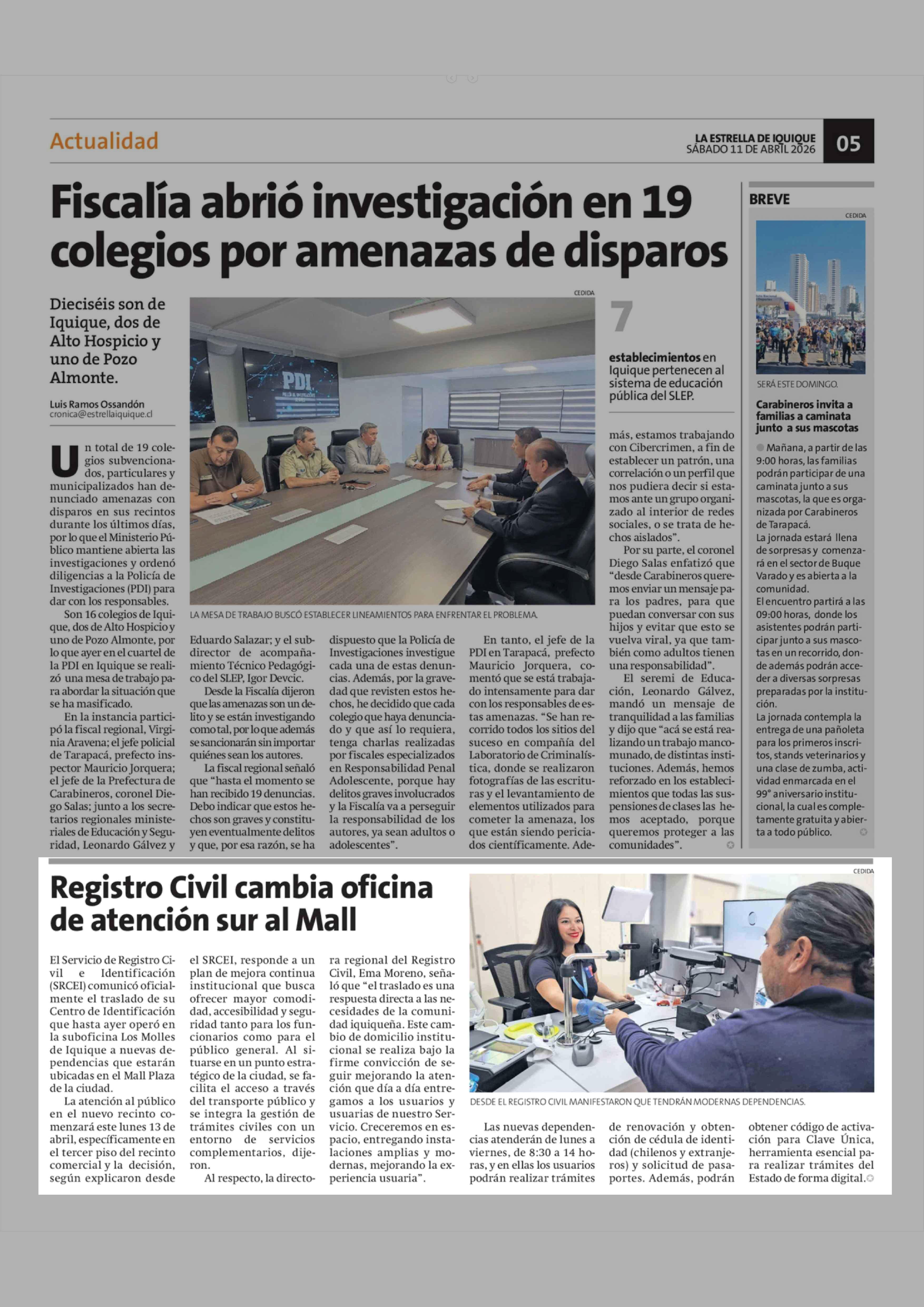 | Fecha: | 11-04-2026 | Sector: | Noticia general | Región: | Región de Tarapacá |