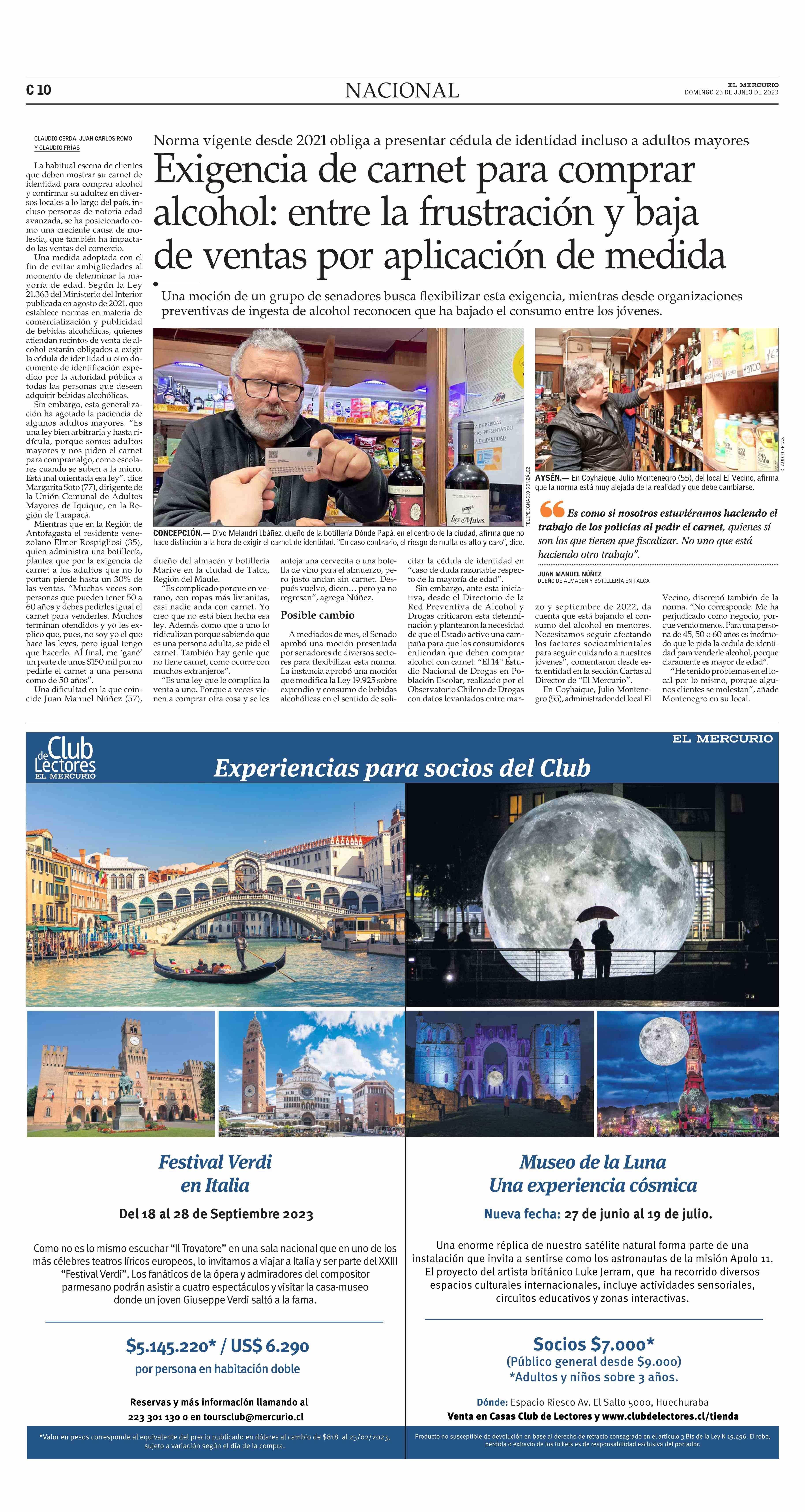 Exigencia de carnet para comprar alcohol: entre la frustración y baja de ventas por aplicación de medida 25-06-2023 El Mercurio |