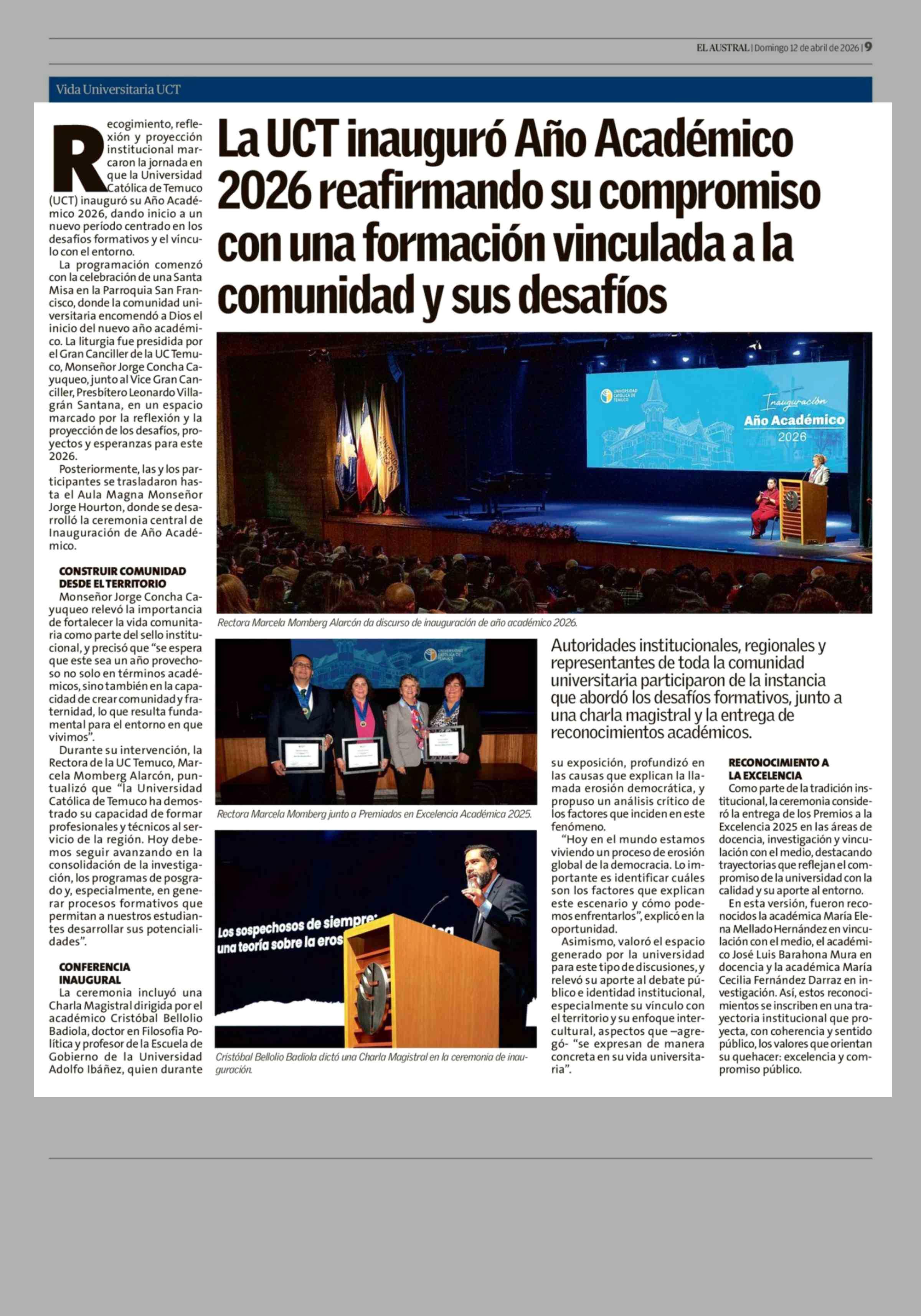 Título: La UCT inauguró Año Académico 2026 reafirmando su compromiso con una formación vinculada a la comunidad y sus desafíos