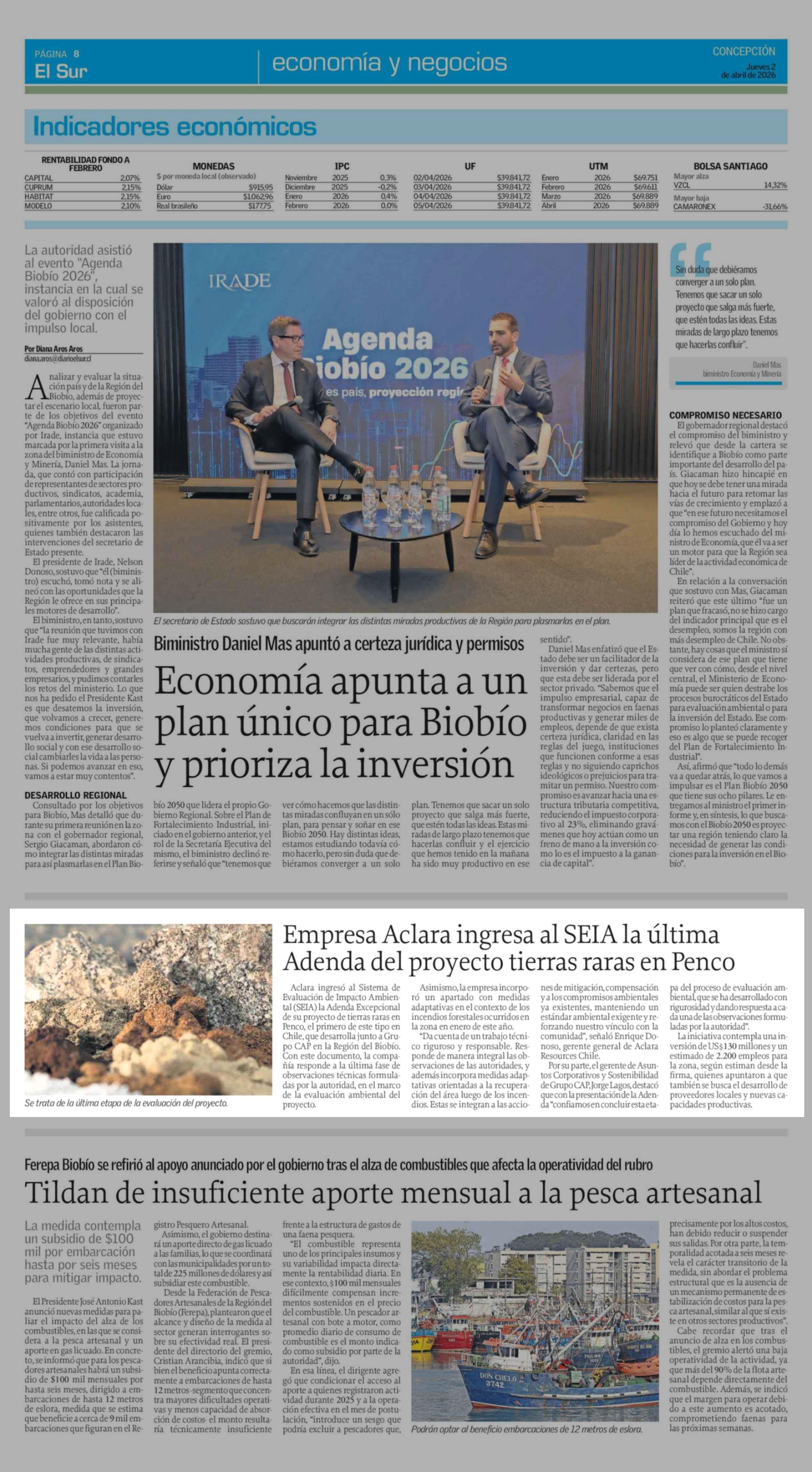 Título: Empresa Aclara ingresa al SEIA la última Adenda del proyecto tierras raras en Penco