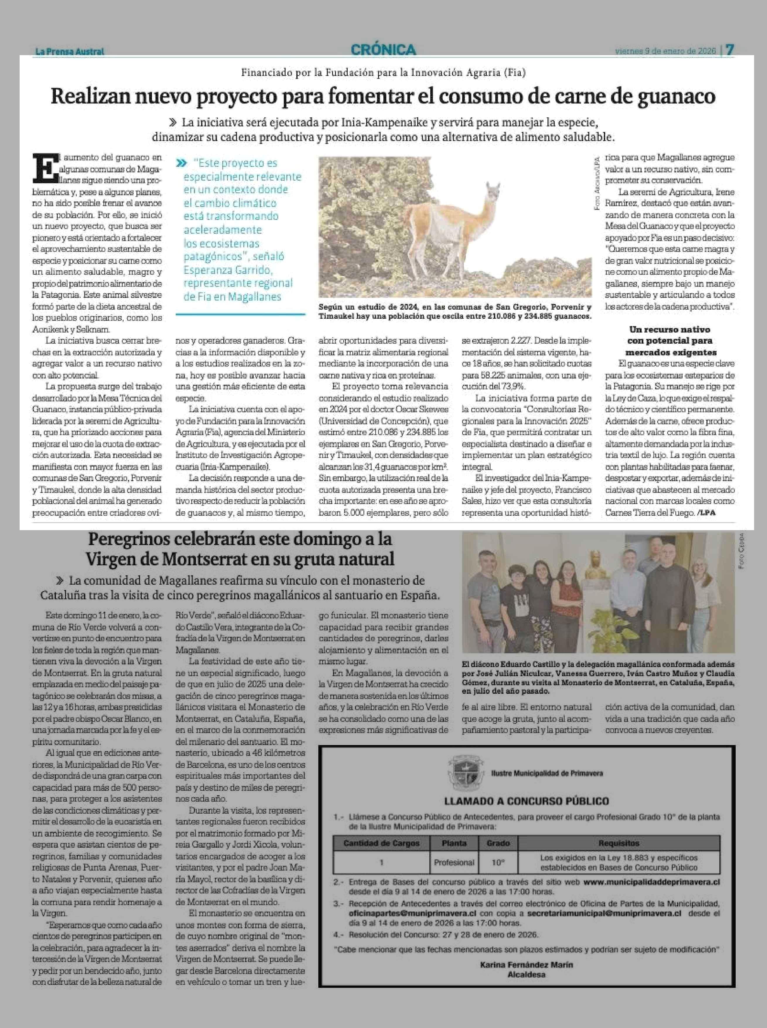 Fecha: 09-01-2026 Sector: Noticia general Región: Región de Magallanes y de la Antártica Chilena