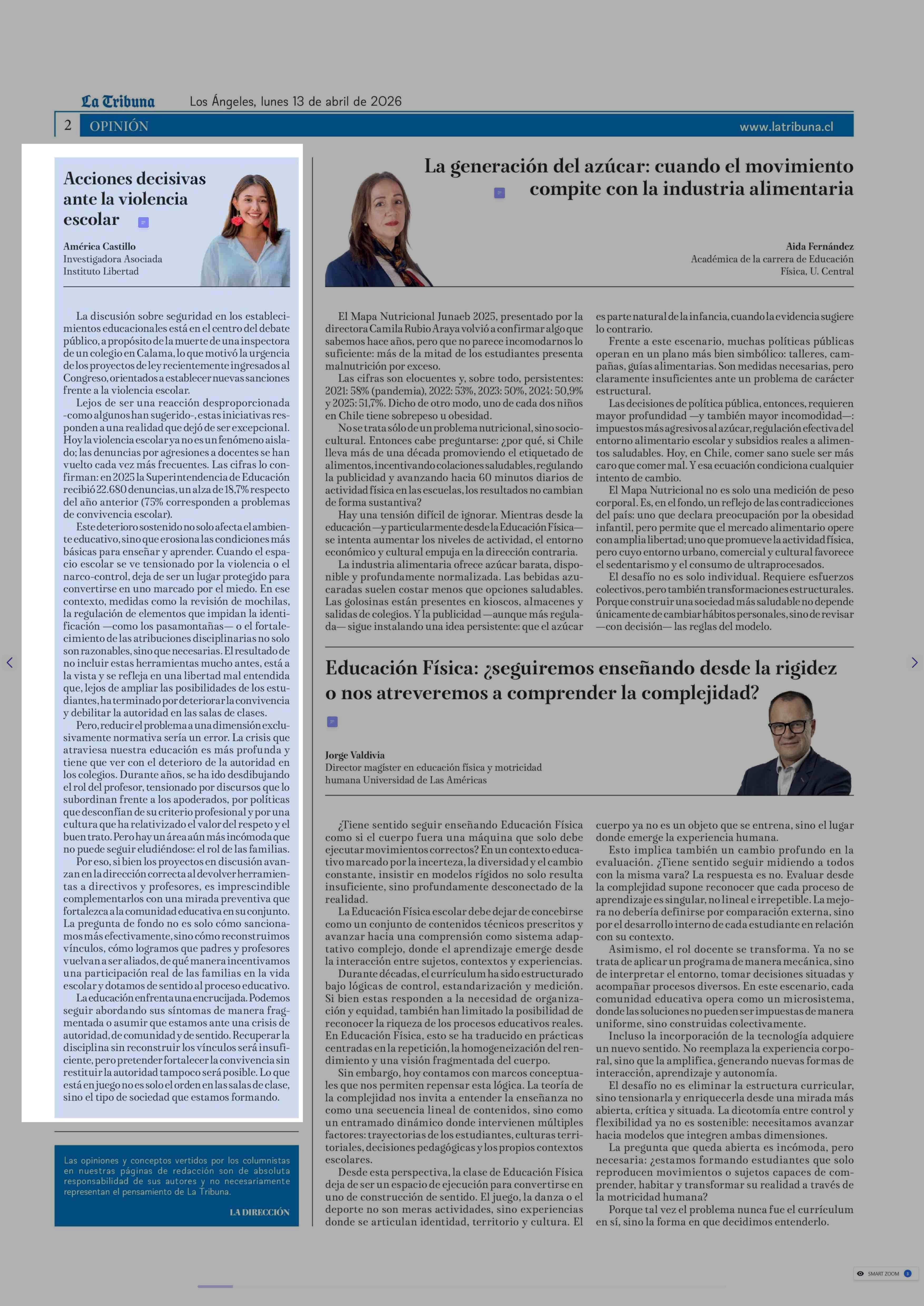 Acciones decisivas ante la violencia escolar 13-04-2026 La Tribuna |