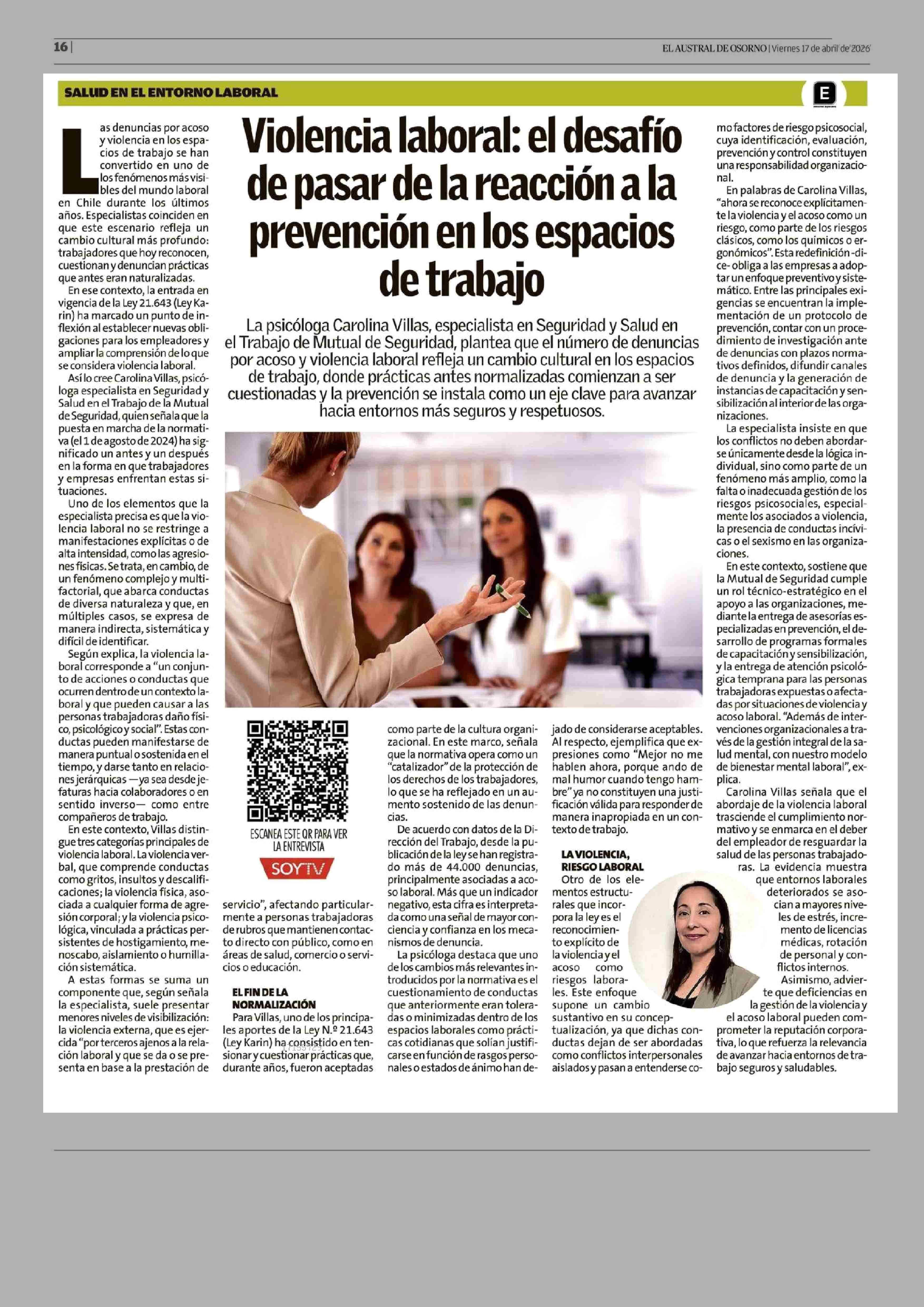 Fuente: El Austral de Osorno (El Austral de Osorno) Página(s): 16