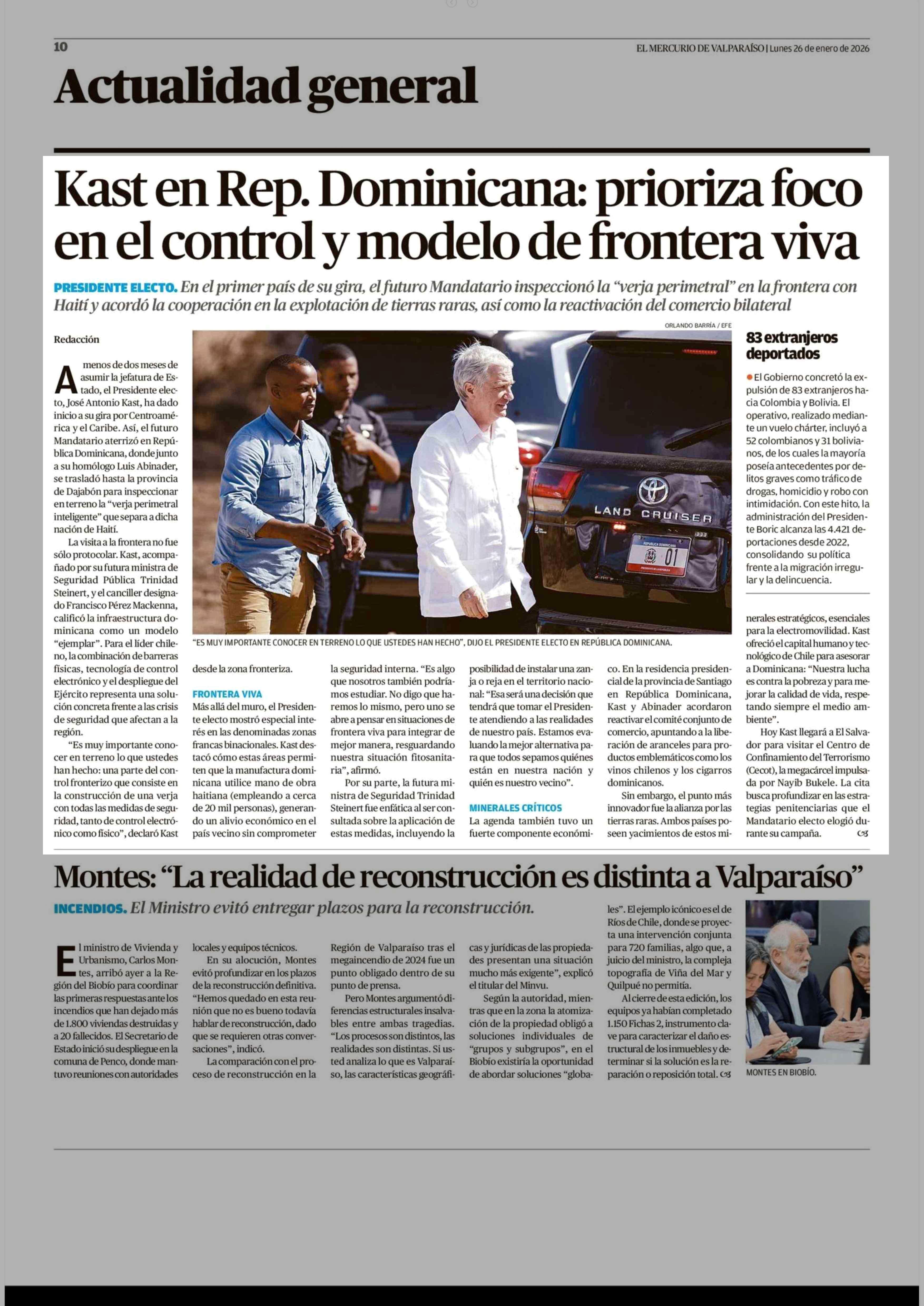 Título: Kast en Rep. Dominicana: prioriza foco en el control y modelo de frontera viva