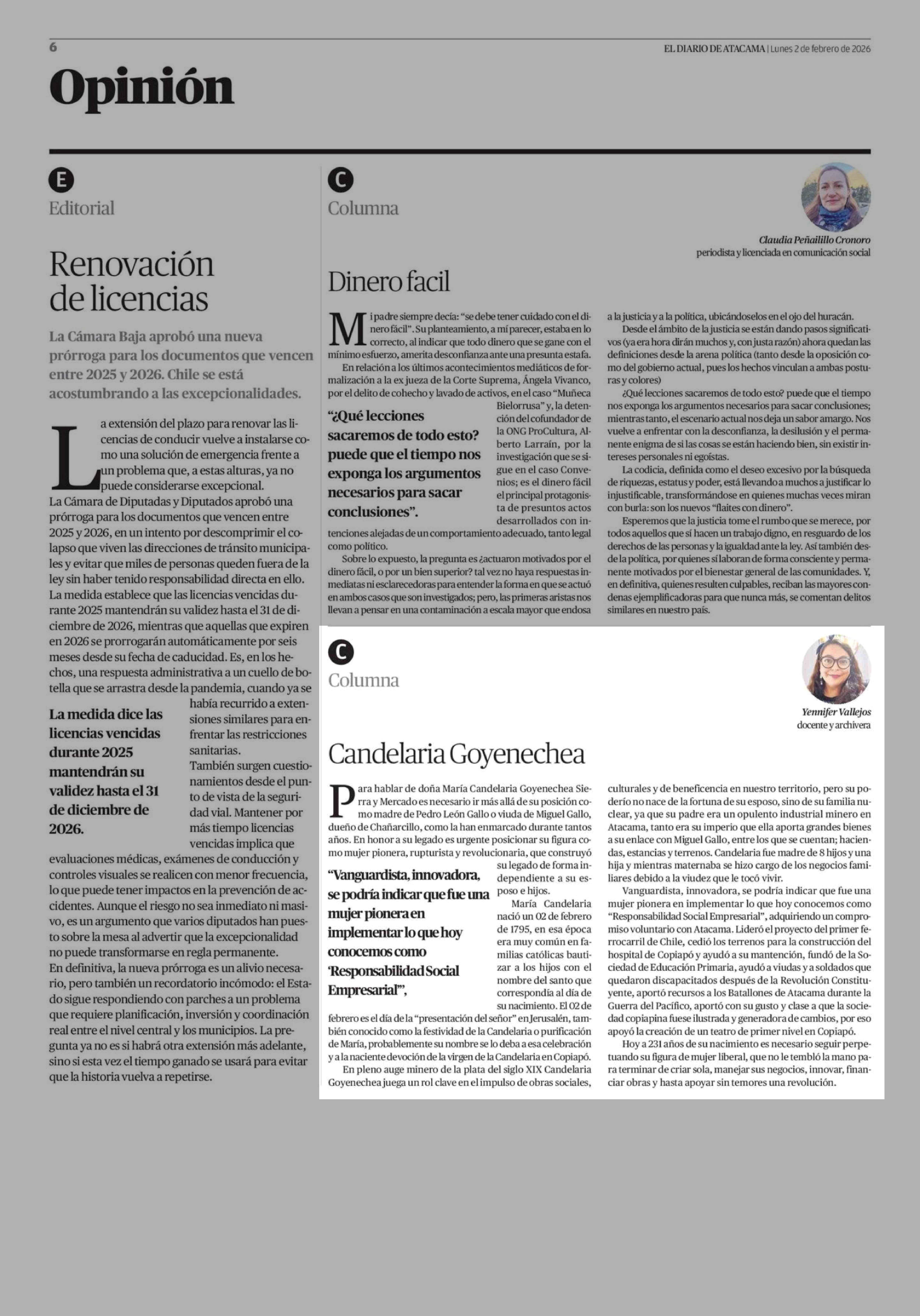 Columnas de Opinión: Candelaria Goyenechea 02-02-2026 El Diario de Atacama |