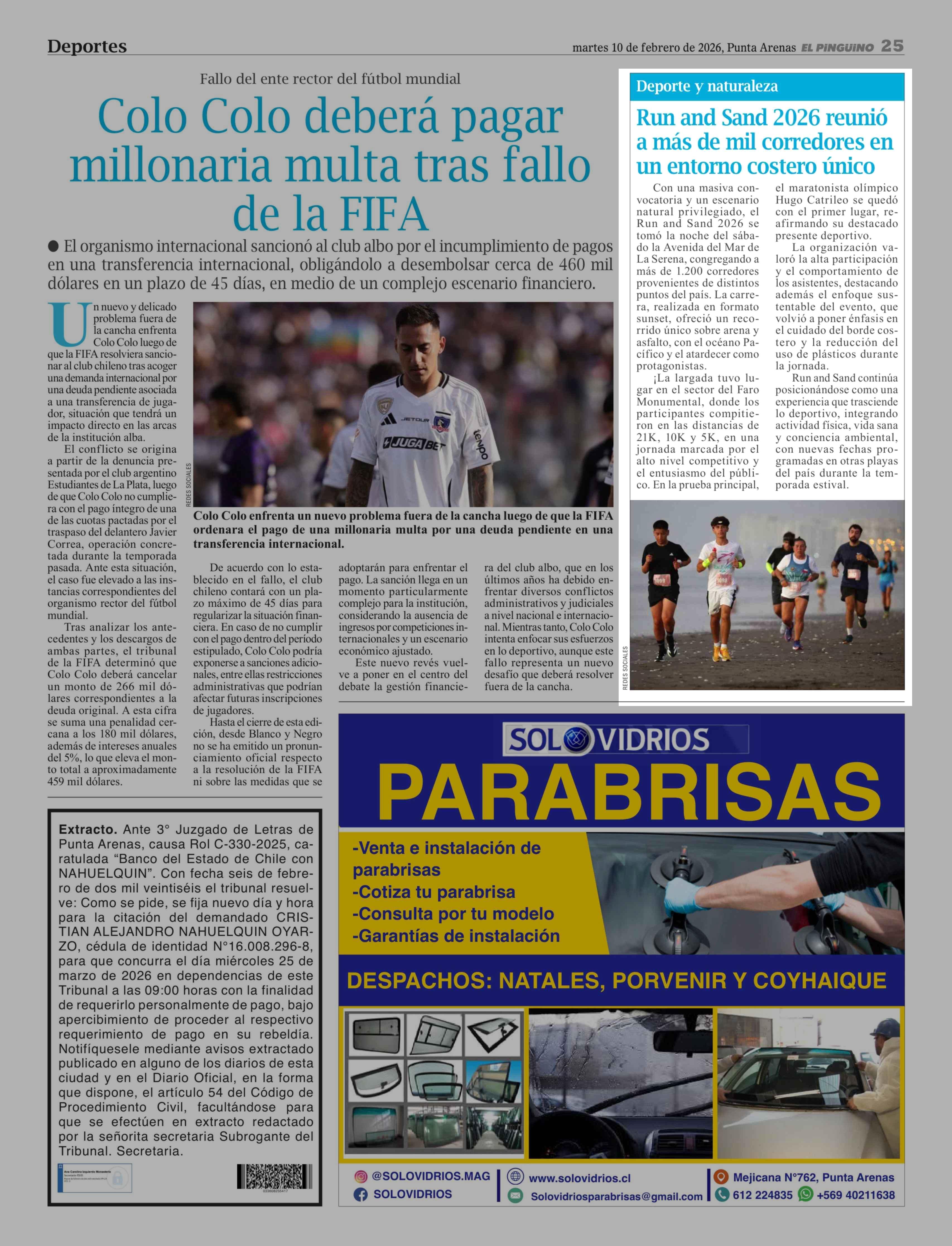 | Fecha: | 10-02-2026 | Sector: | Noticia general | Región: | Región de Magallanes y de la Antártica Chilena |