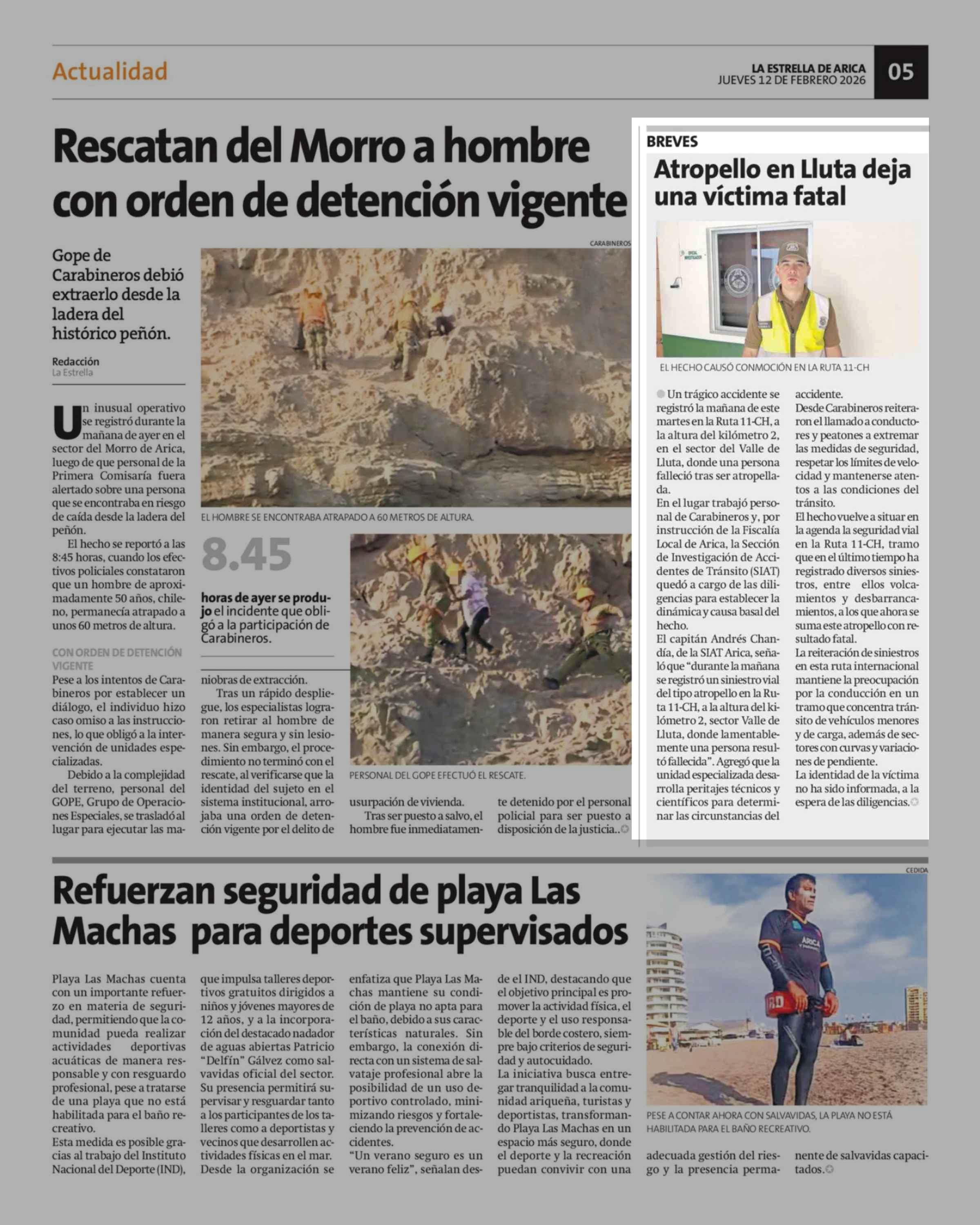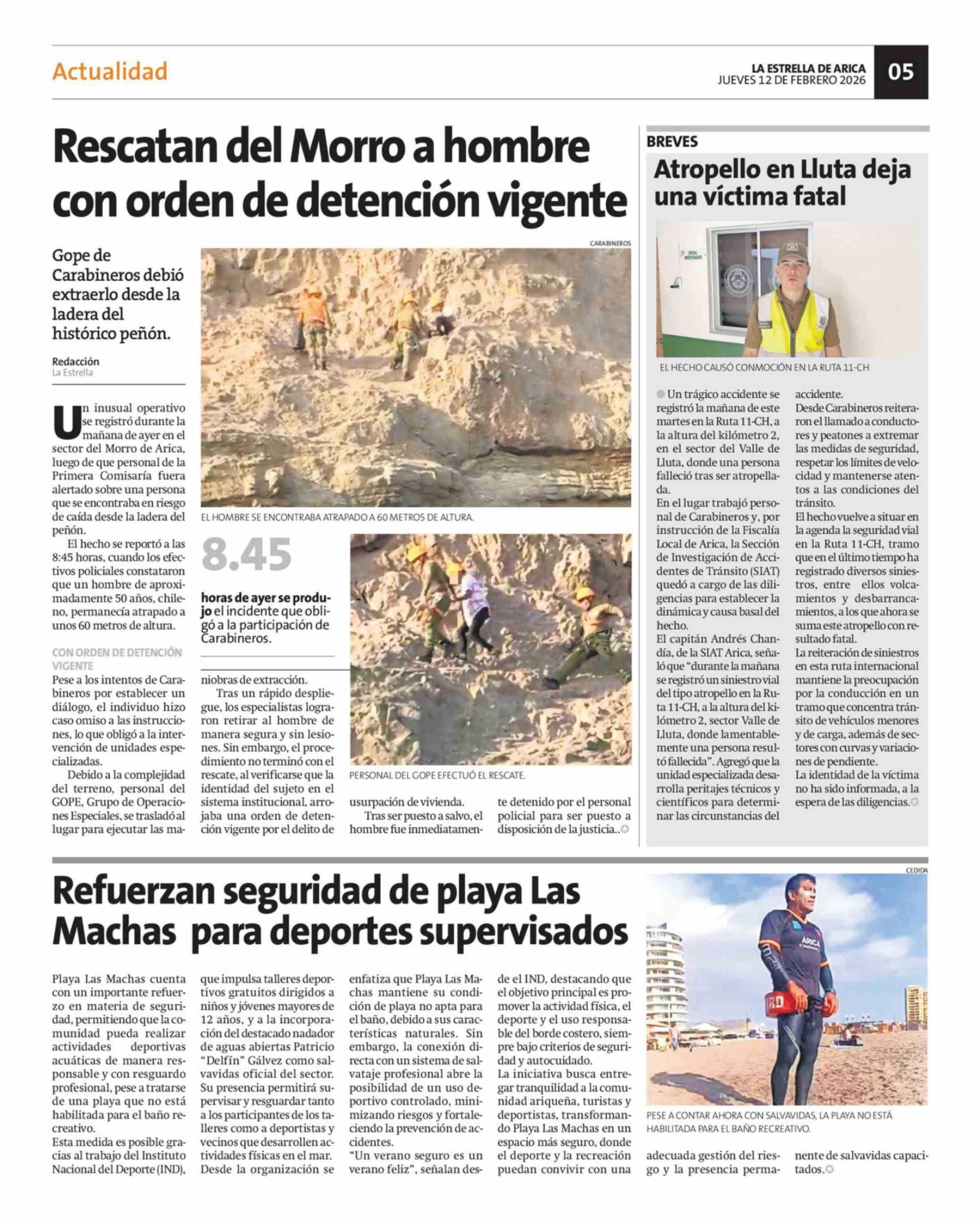 Fecha: 12-02-2026 Sector: Noticia general Región: Región de Arica y Parinacota