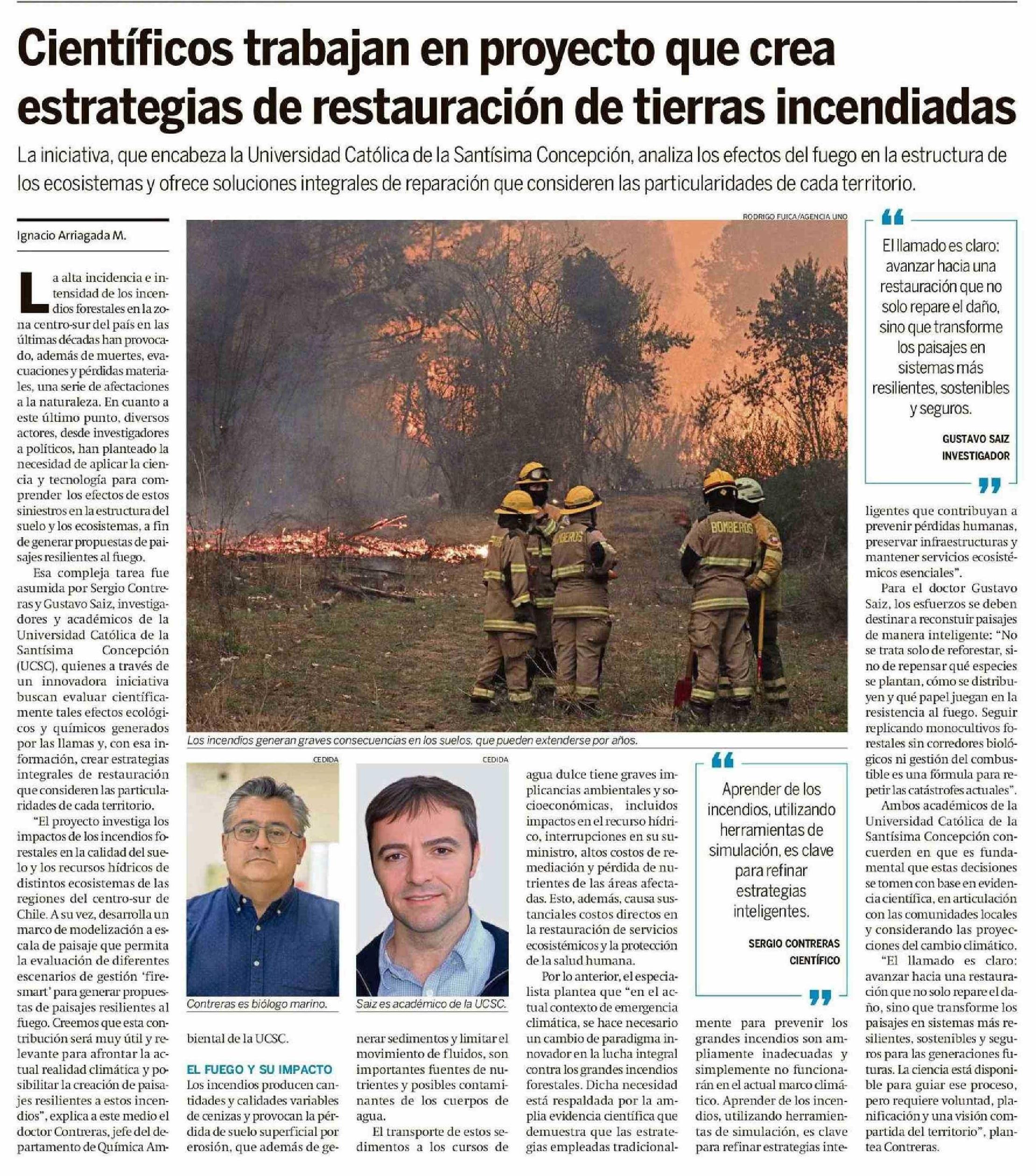 Título: Científicos trabajan en proyecto que crea estrategias de restauración de tierras incendiadas
