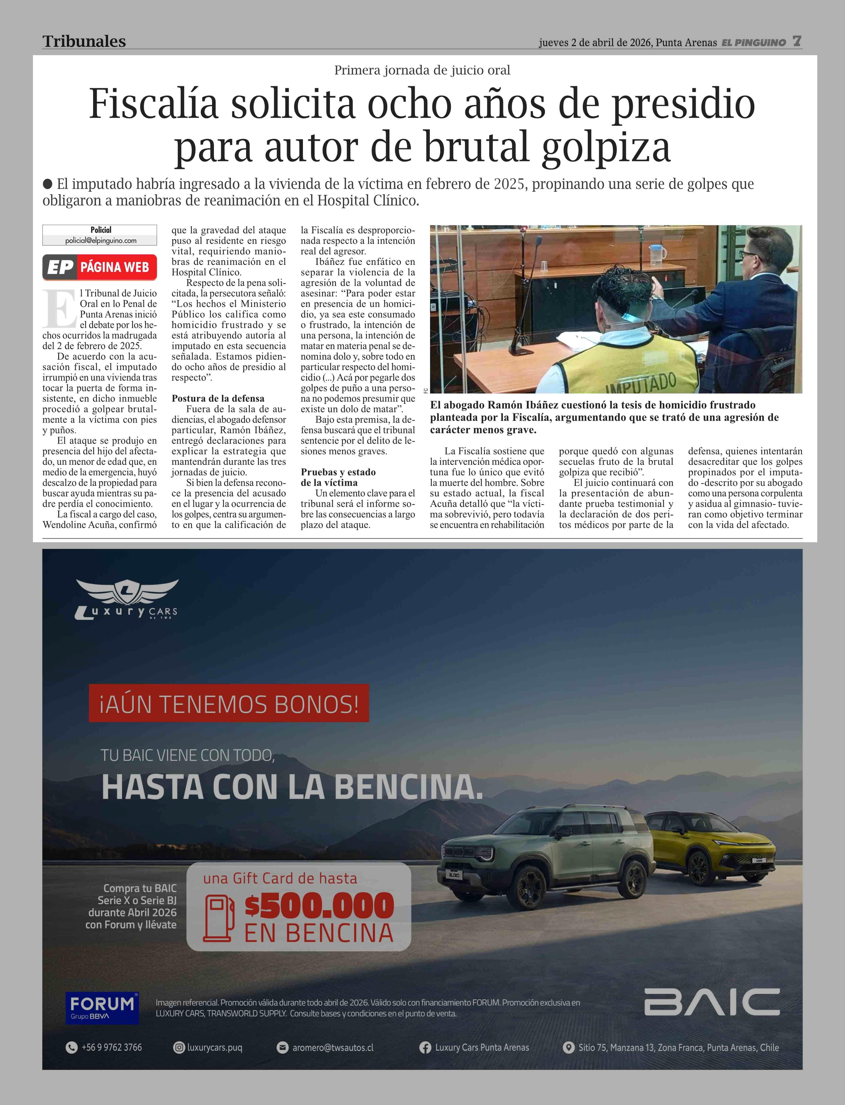 Fiscalía solicita ocho años de presidio para autor de brutal golpiza 02-04-2026 El Pingüino |