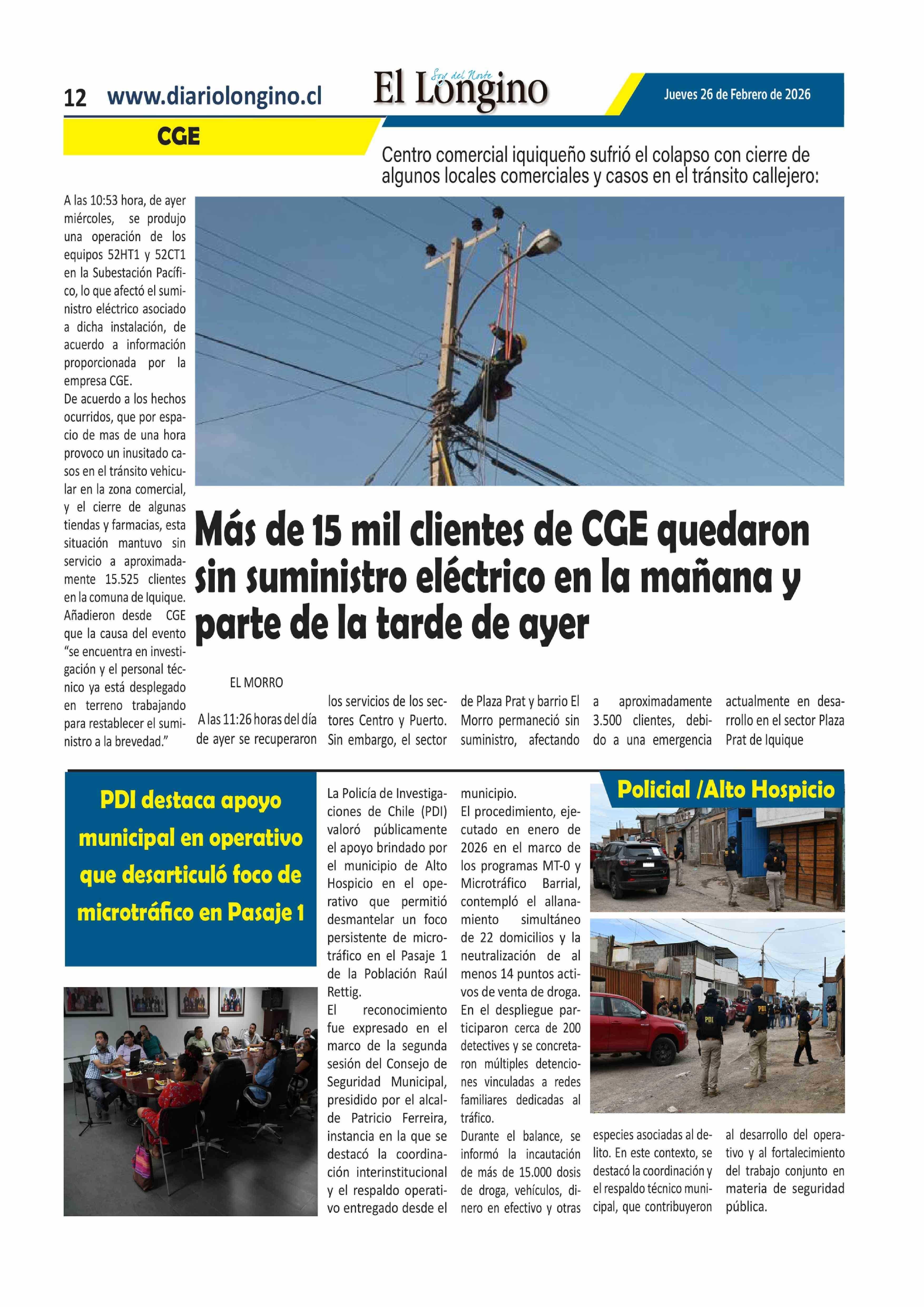 Fecha: 26-02-2026 Sector: Noticia general Región: Región de Tarapacá