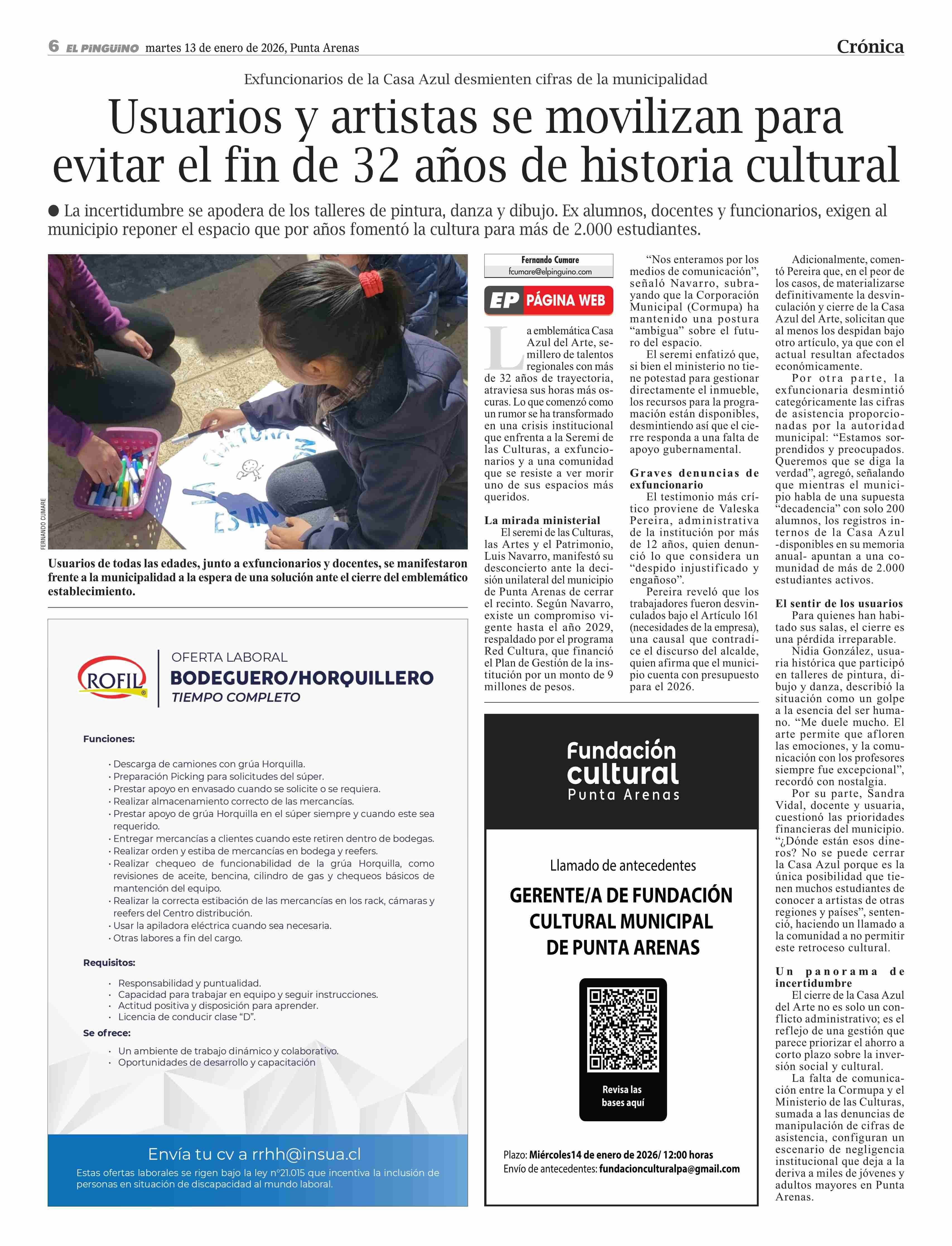 Usuarios y artistas se movilizan para evitar el fin de 32 años de historia cultural 13-01-2026 El Pingüino |