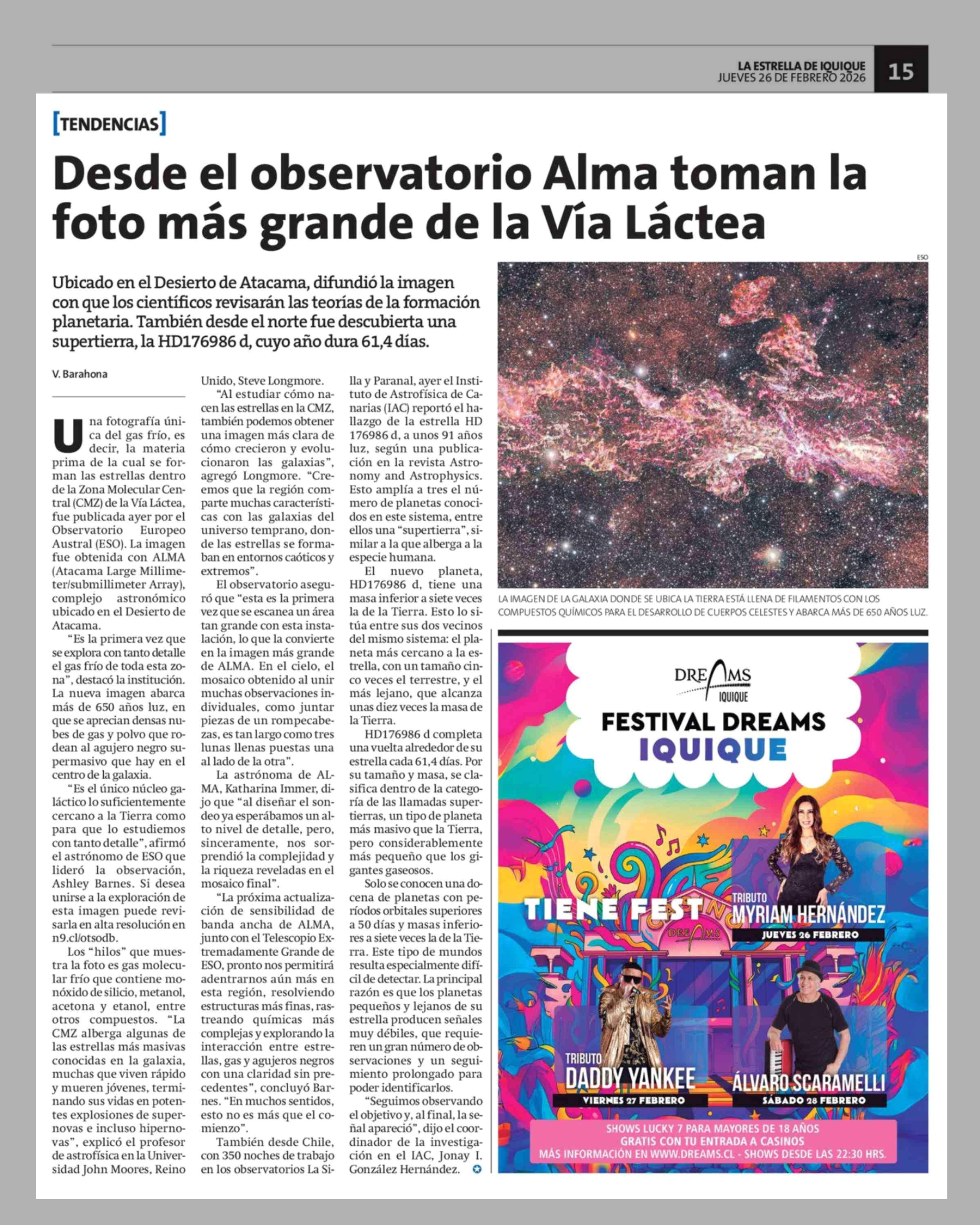 Título: Desde el observatorio Alma toman la foto más grande de la Vía Láctea