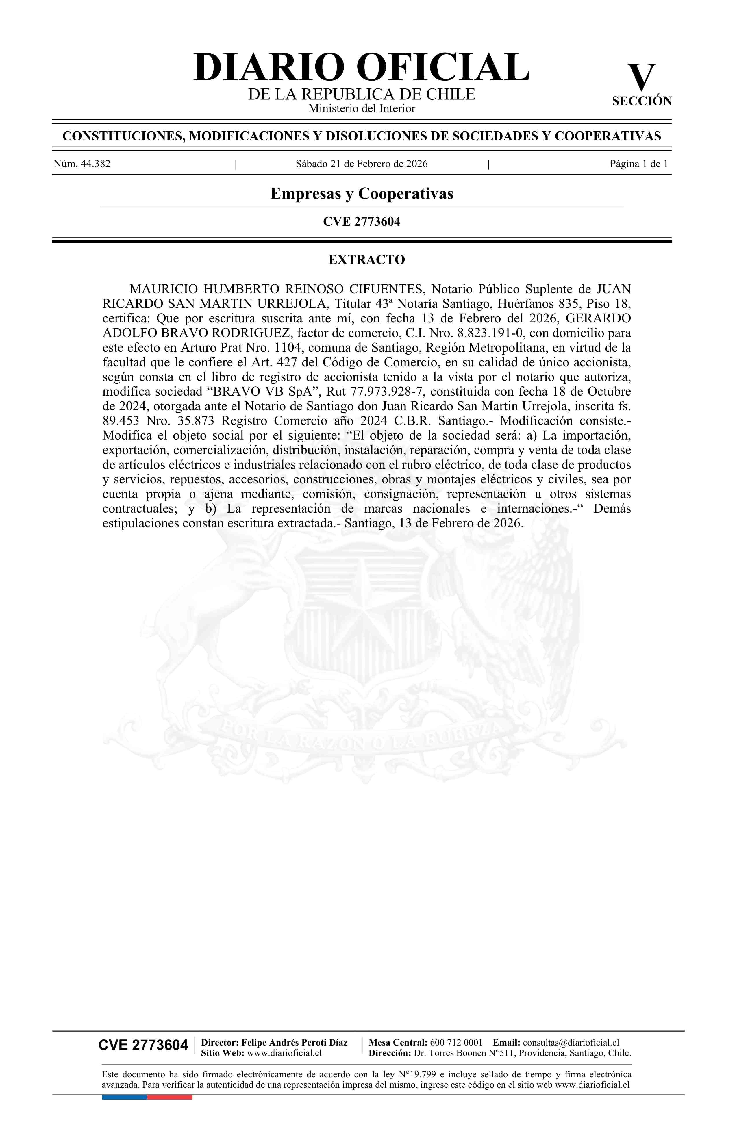 Título: BRAVO VB SpA 77.973.928-7*