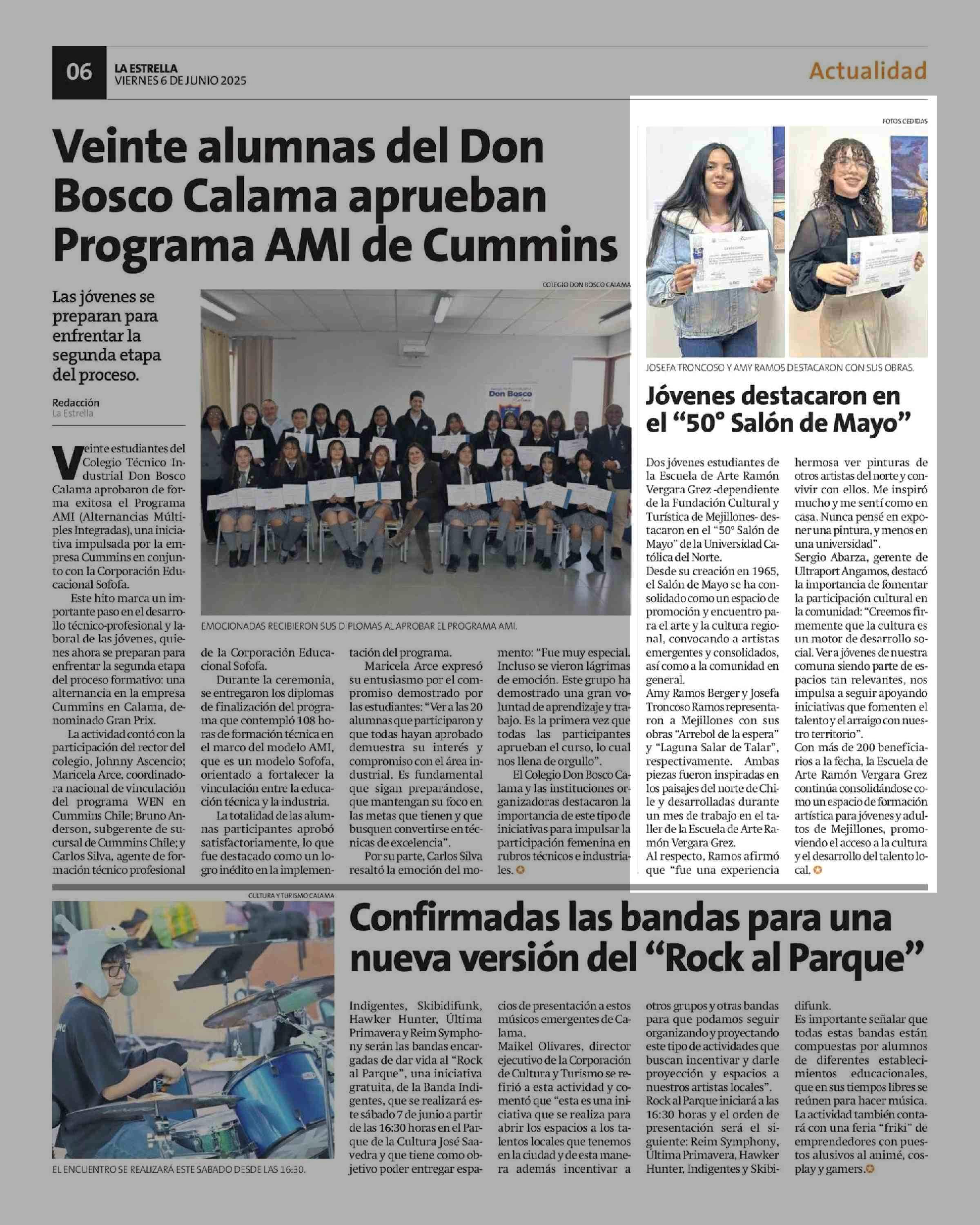 Jóvenes destacaron en el “50? Salón de Mayo” 06-06-2025 La Estrella de Antofagasta |