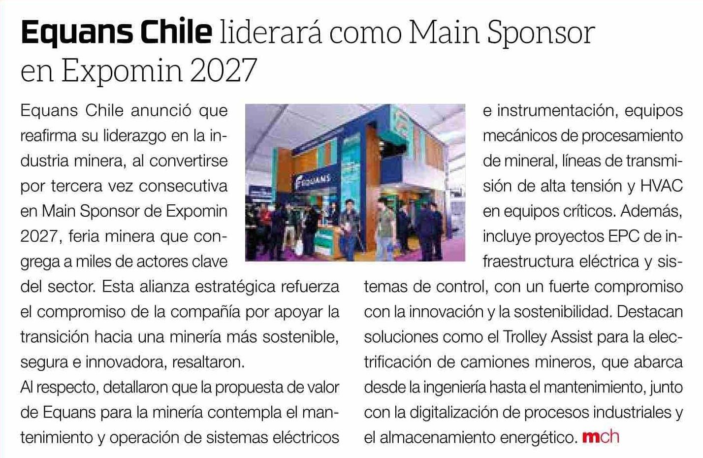 Título: Equans Chile liderará como Main Sponsor en Expomin 2027