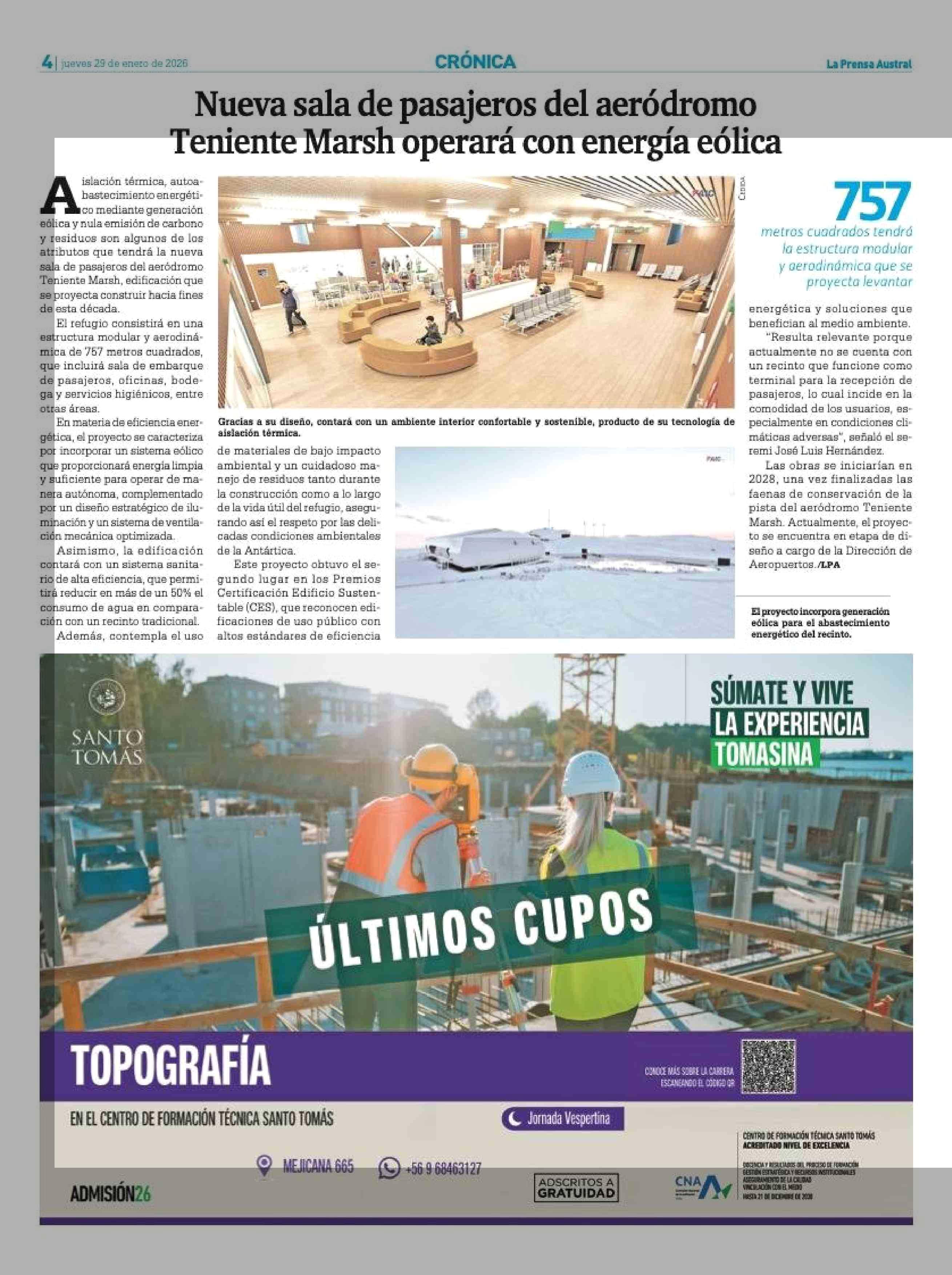 Título: Nueva sala de pasajeros del aeródromo Teniente Marsh operará con energía eólica