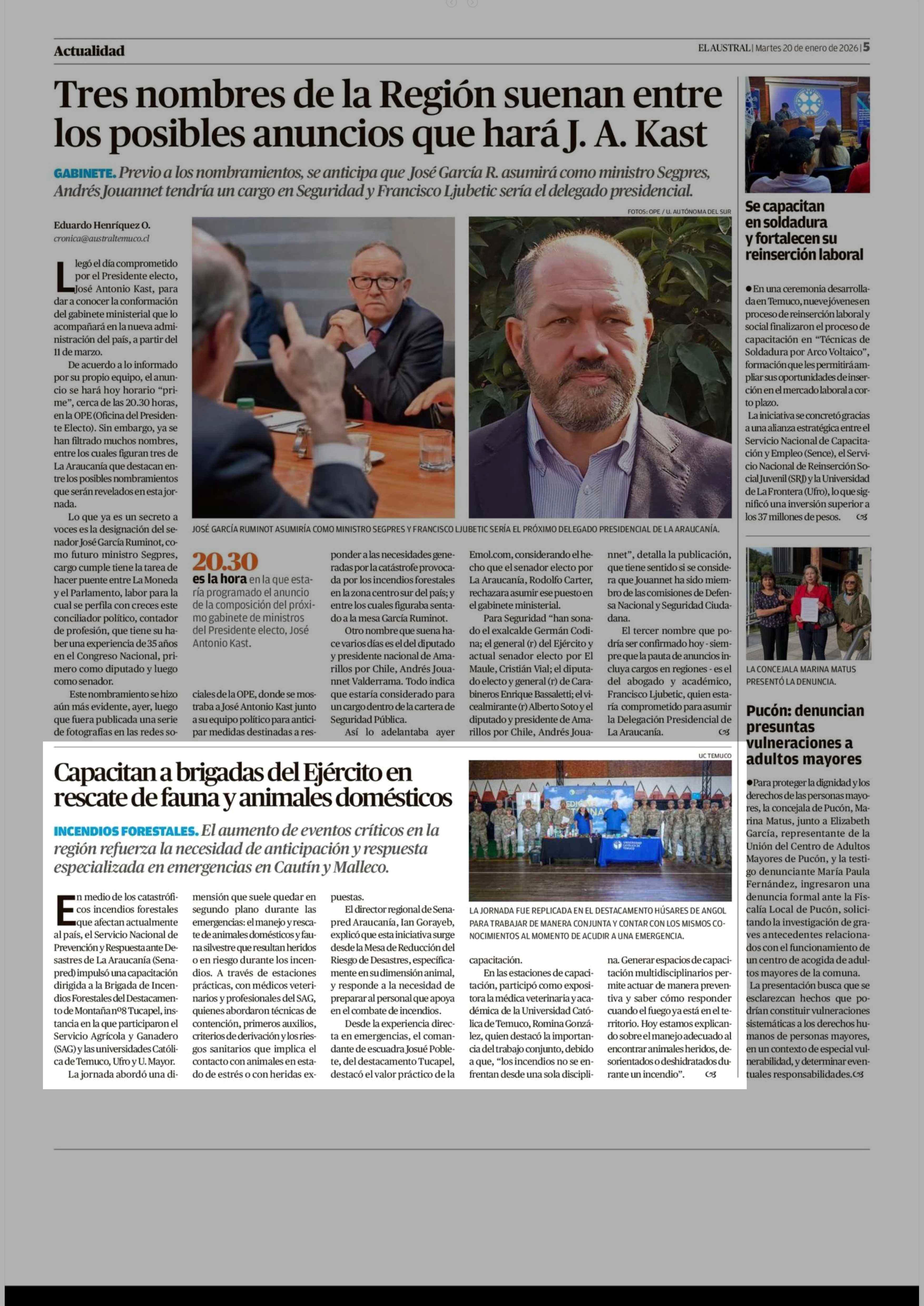| Fecha: | 20-01-2026 | Sector: | Noticia general | Región: | Región de la Araucanía |
