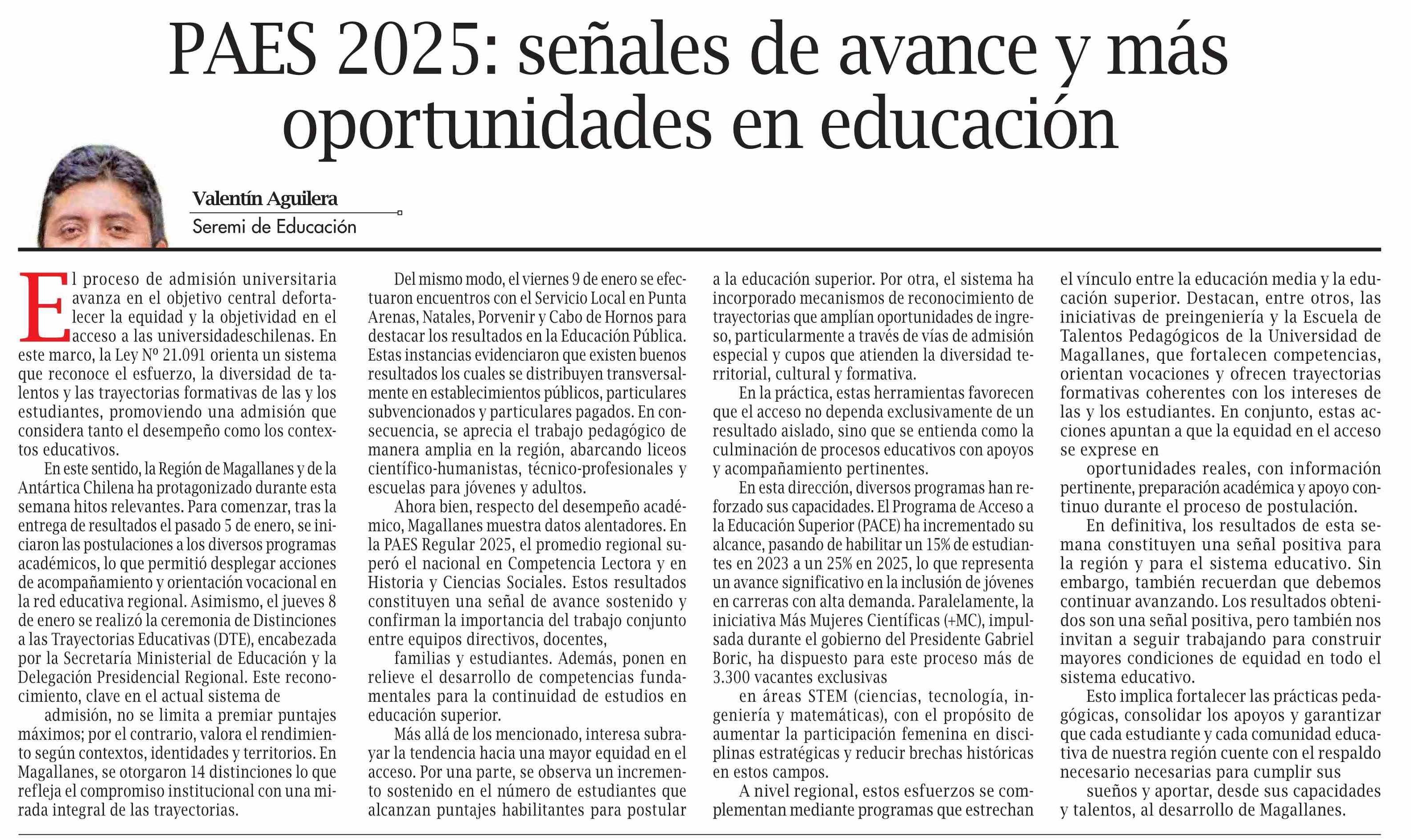 PAES 2025: señales de avance y más oportunidades en educación 25-01-2026 El Pingüino |