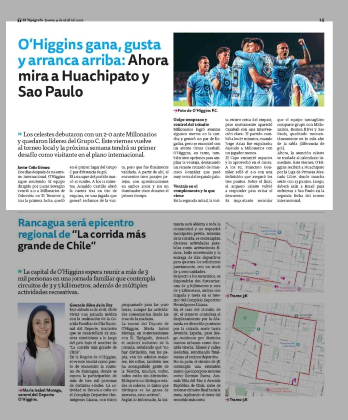 Título: O'Higgins gana, gusta y arranca arriba: Ahora mira a Huachipato y Sao Paulo