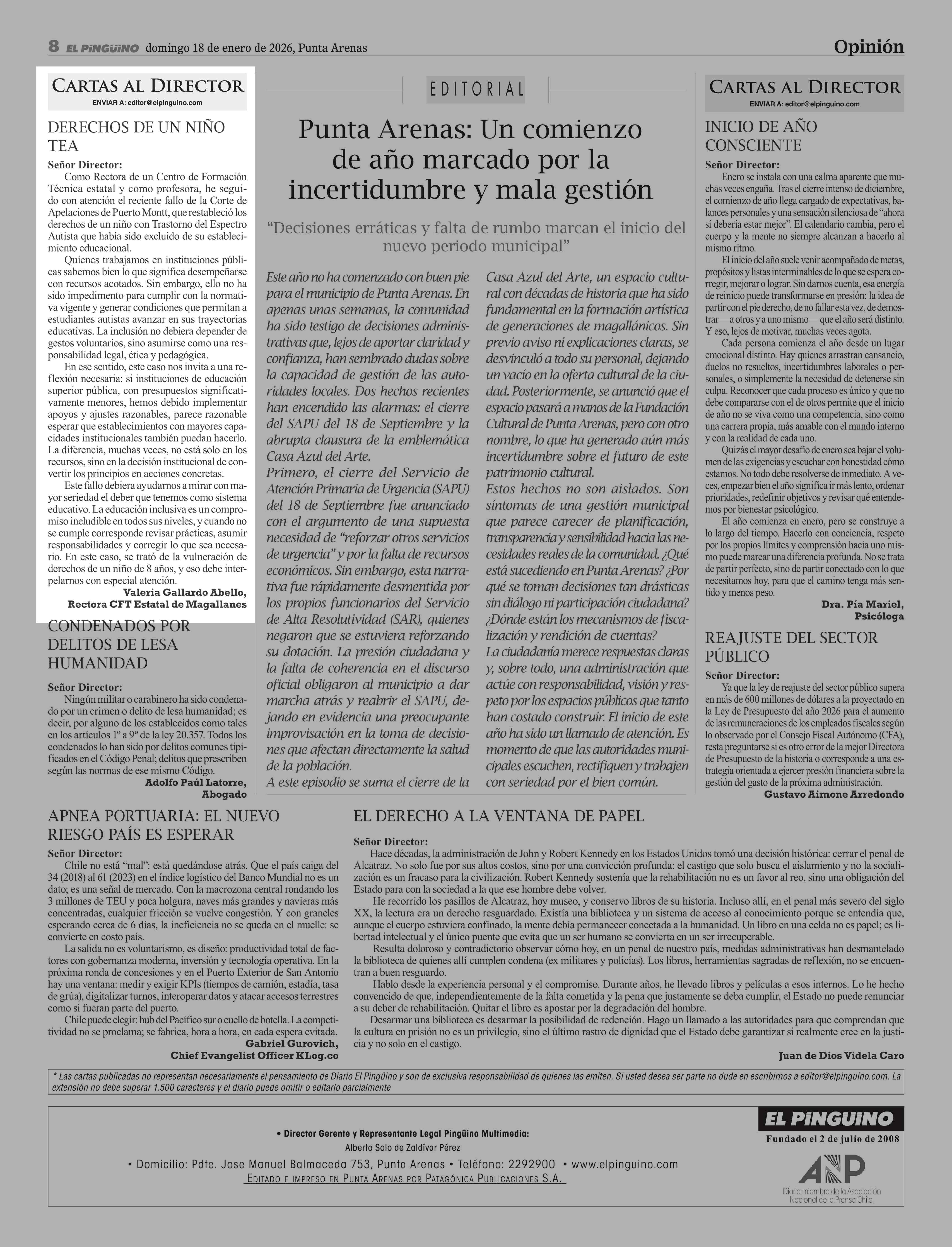 Cartas: DERECHOS DE UN NIÑO TEA 18-01-2026 El Pingüino |