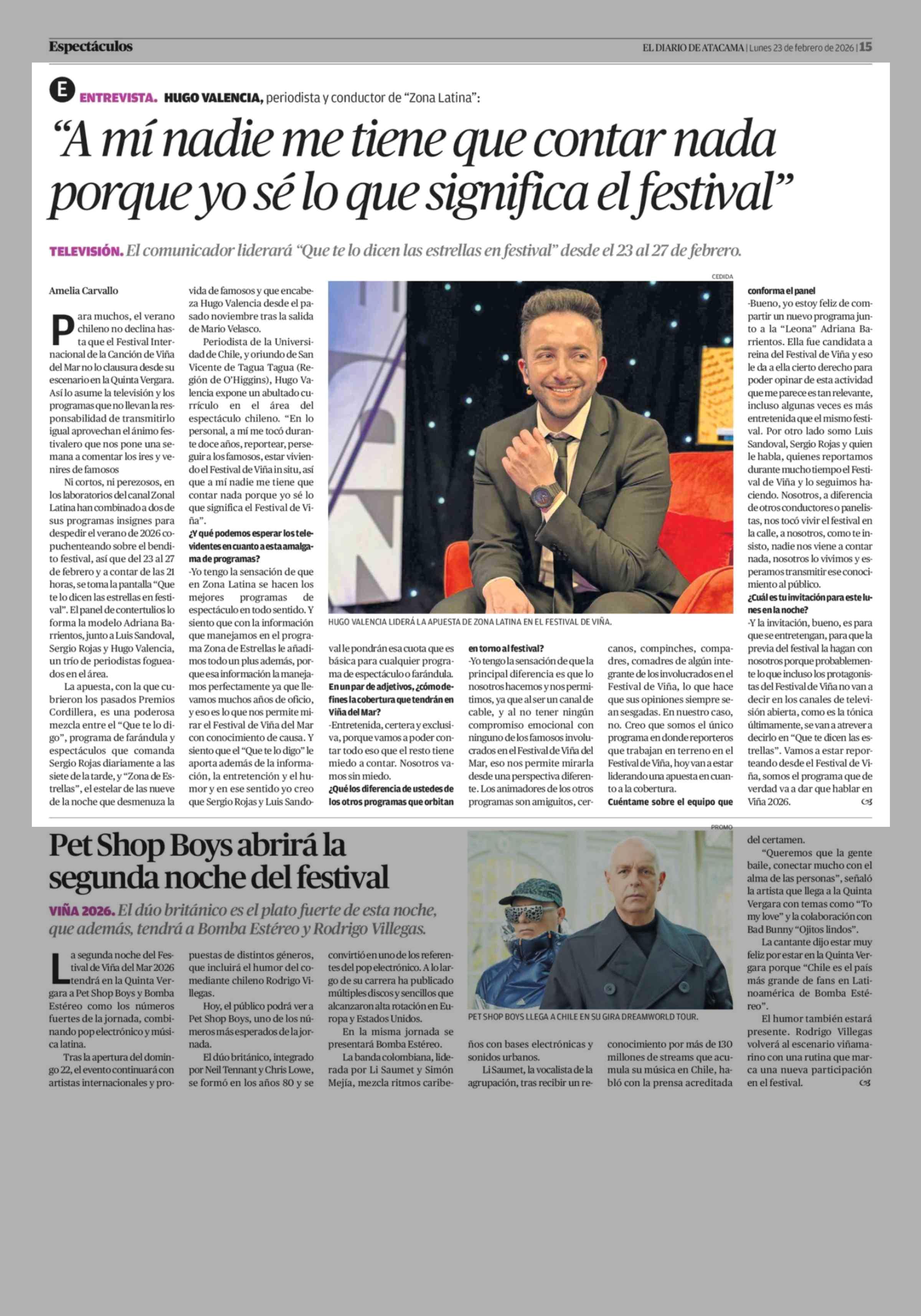 "A mí nadie me tiene que contar nada porque yo sé lo que significa el festival" 23-02-2026 El Diario de Atacama |