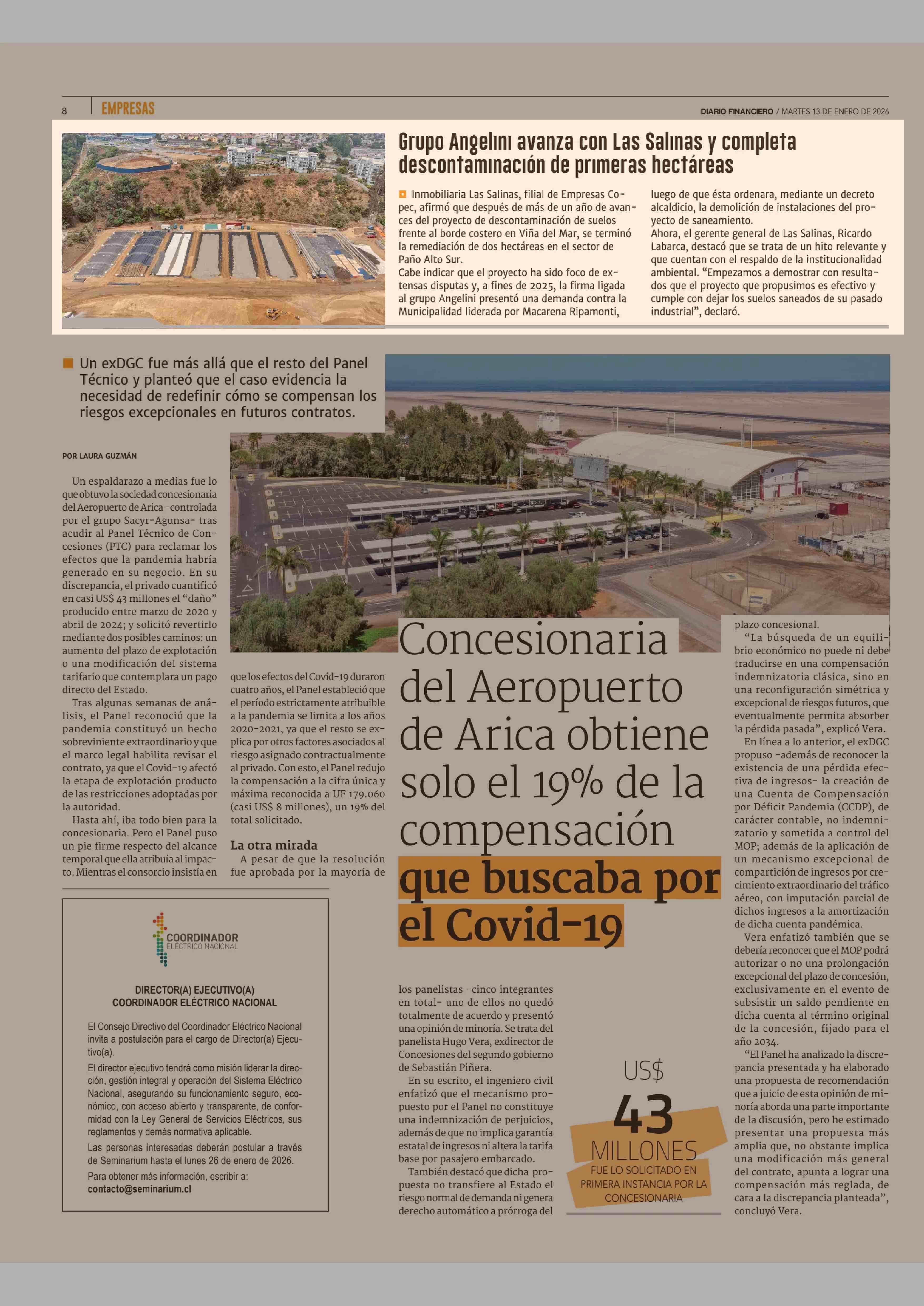 Grupo Angelini avanza con Las Salinas y completa descontaminación de primeras hectáreas 13-01-2026 Diario Financiero |