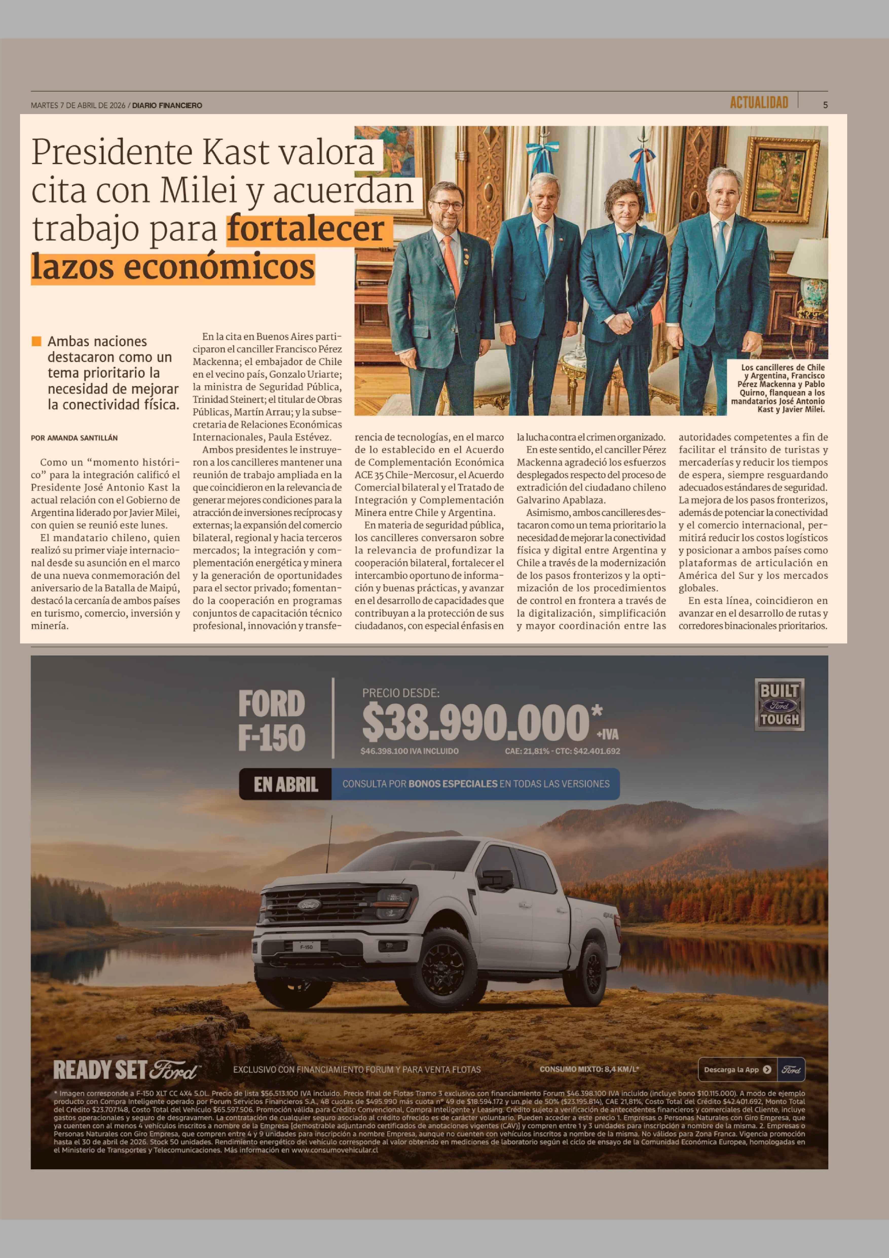 Fuente: Diario Financiero (Diario Financiero) Página(s): 5