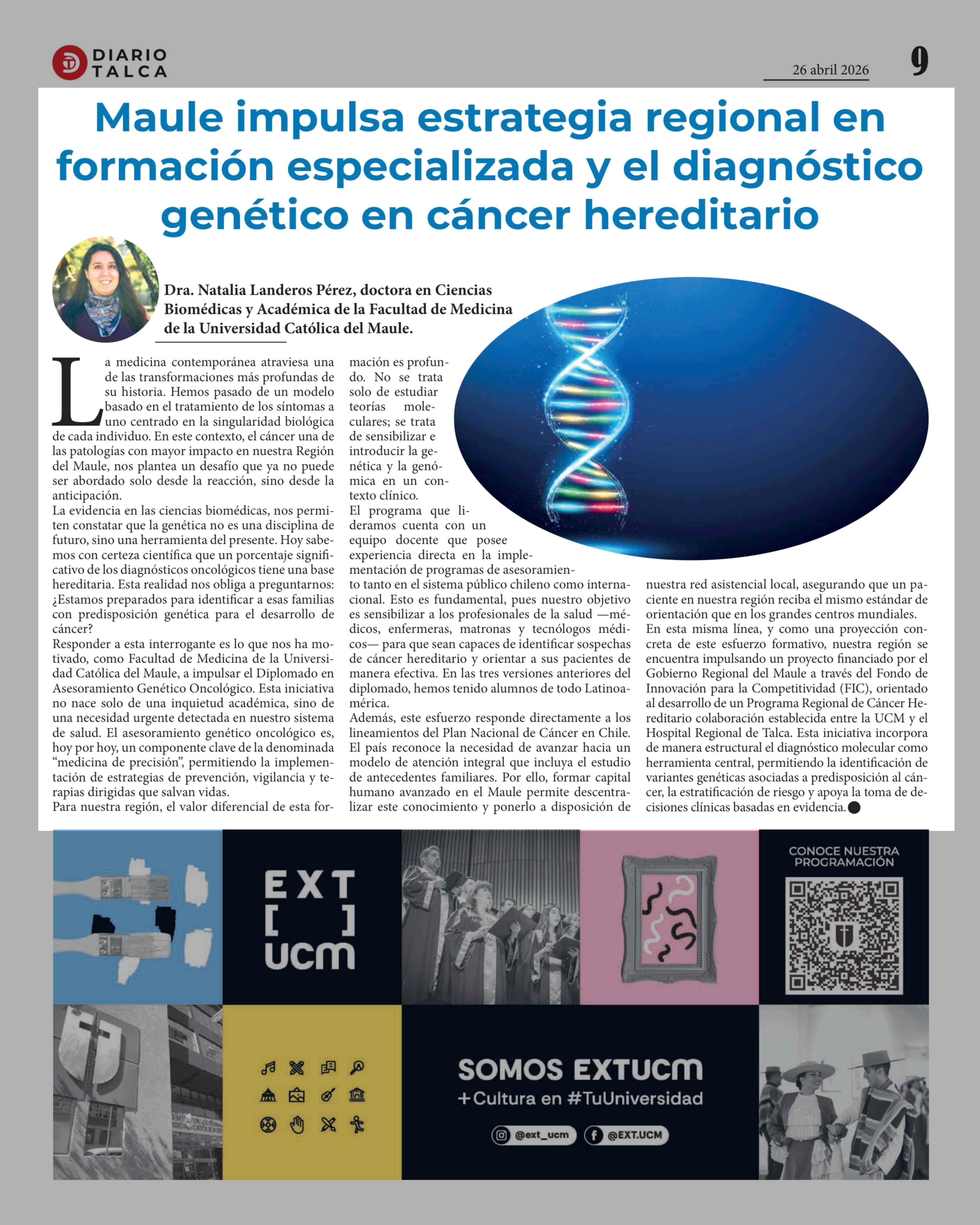 Maule impulsa estrategia regional en formación especializada y el diagnóstico genético en cáncer hereditario 26-04-2026 Diario Talca |