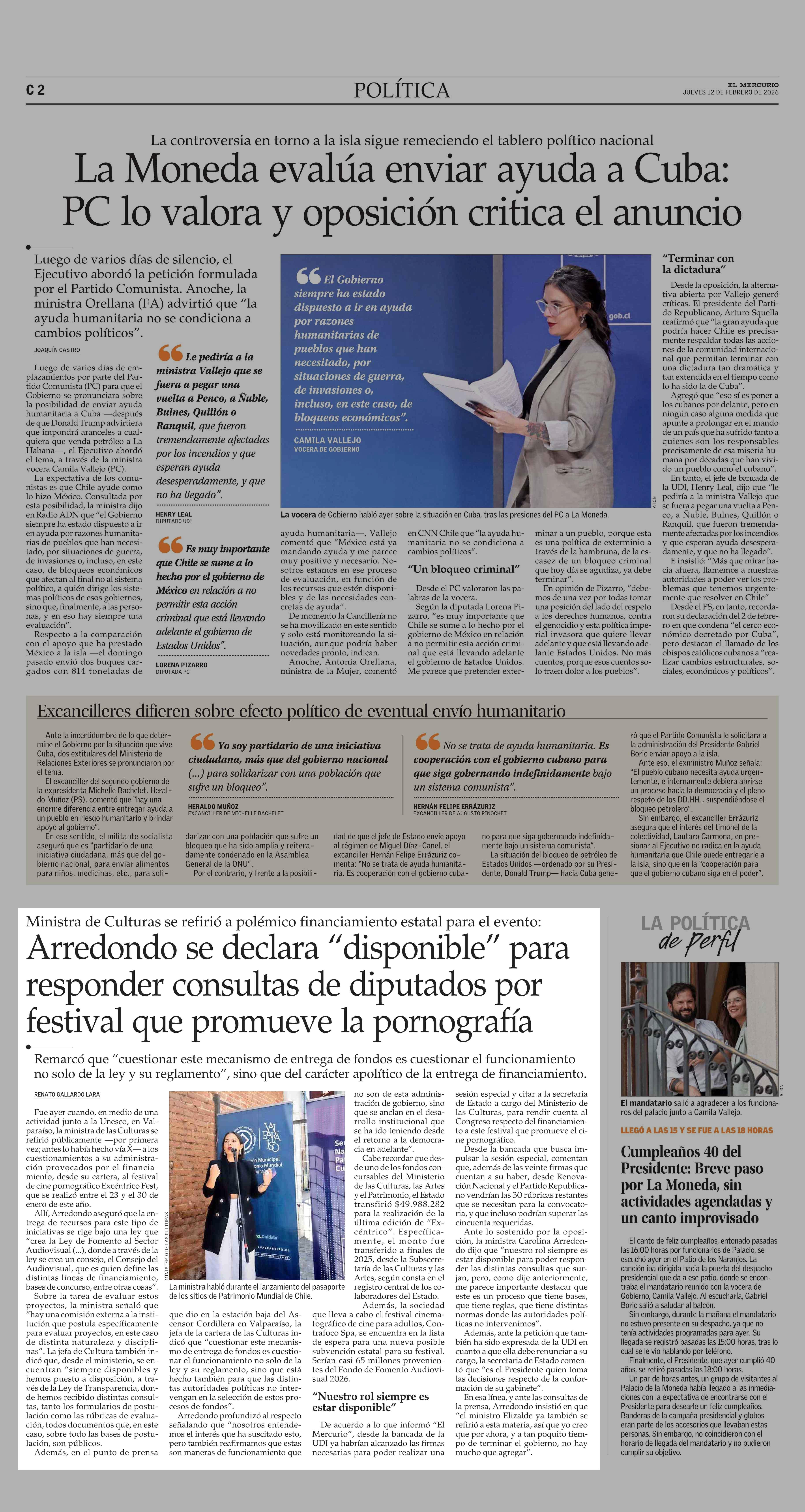 Arredondo se declara “disponible” para responder consultas de diputados por festival que promueve la pornografía 12-02-2026 El Mercurio |