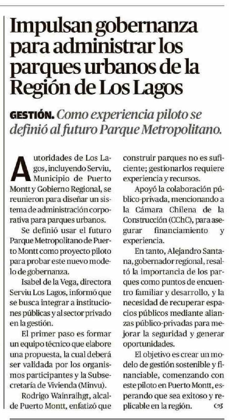 Impulsan gobernanza para administrar los parques urbanos de la Región de Los Lagos 10-04-2025 El Llanquihue |