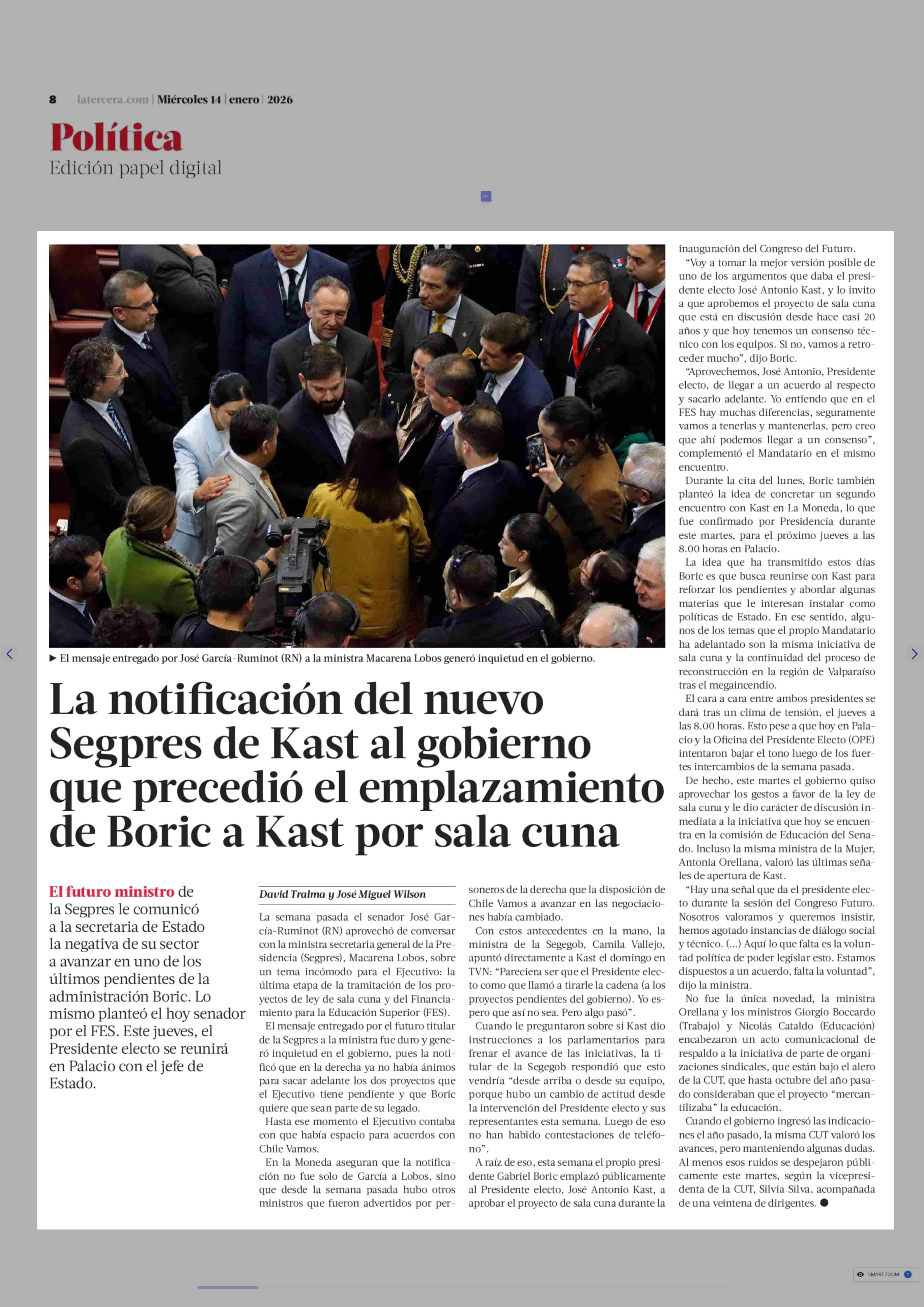 Fuente: La Tercera (La Tercera) Página(s): 8