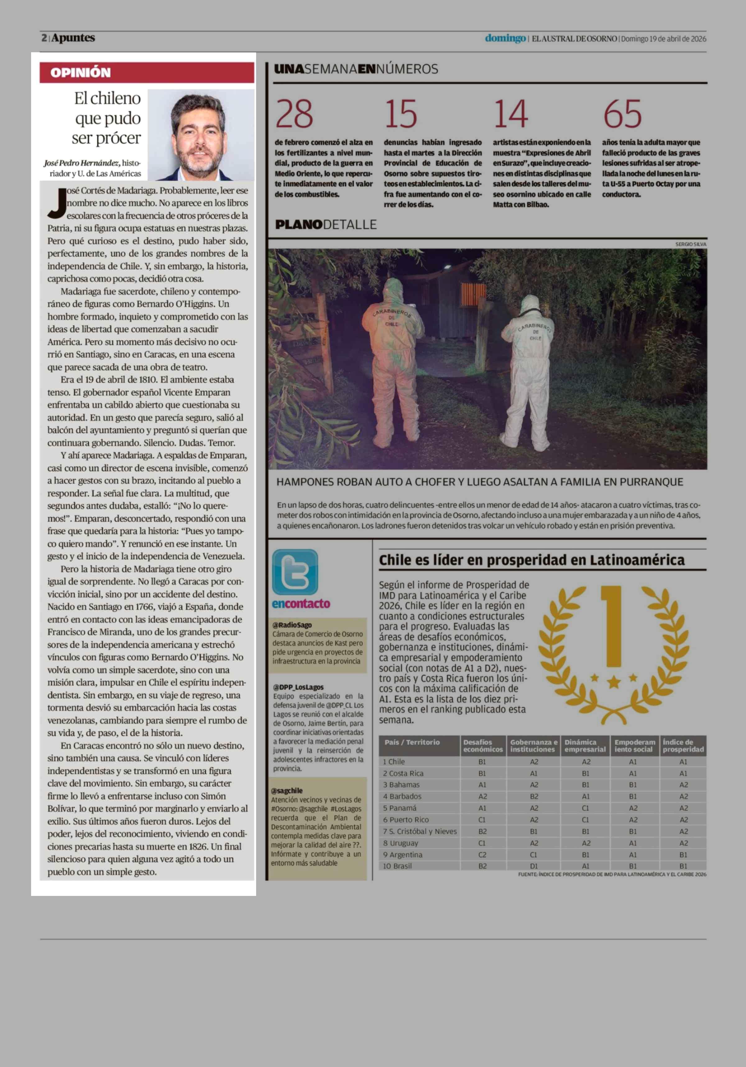 Columnas de Opinión: El chileno que pudo ser prócer 19-04-2026 El Austral de Osorno |