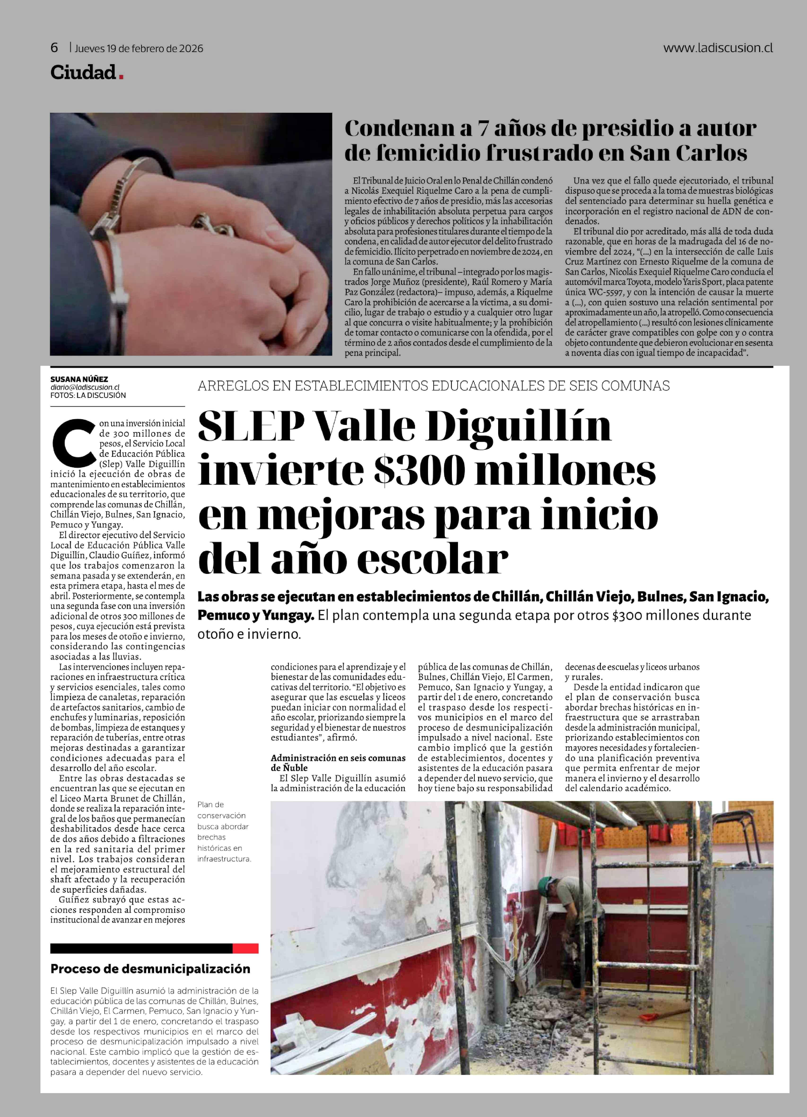 Fecha: 19-02-2026 Sector: Noticia general Región: Región del Ñuble