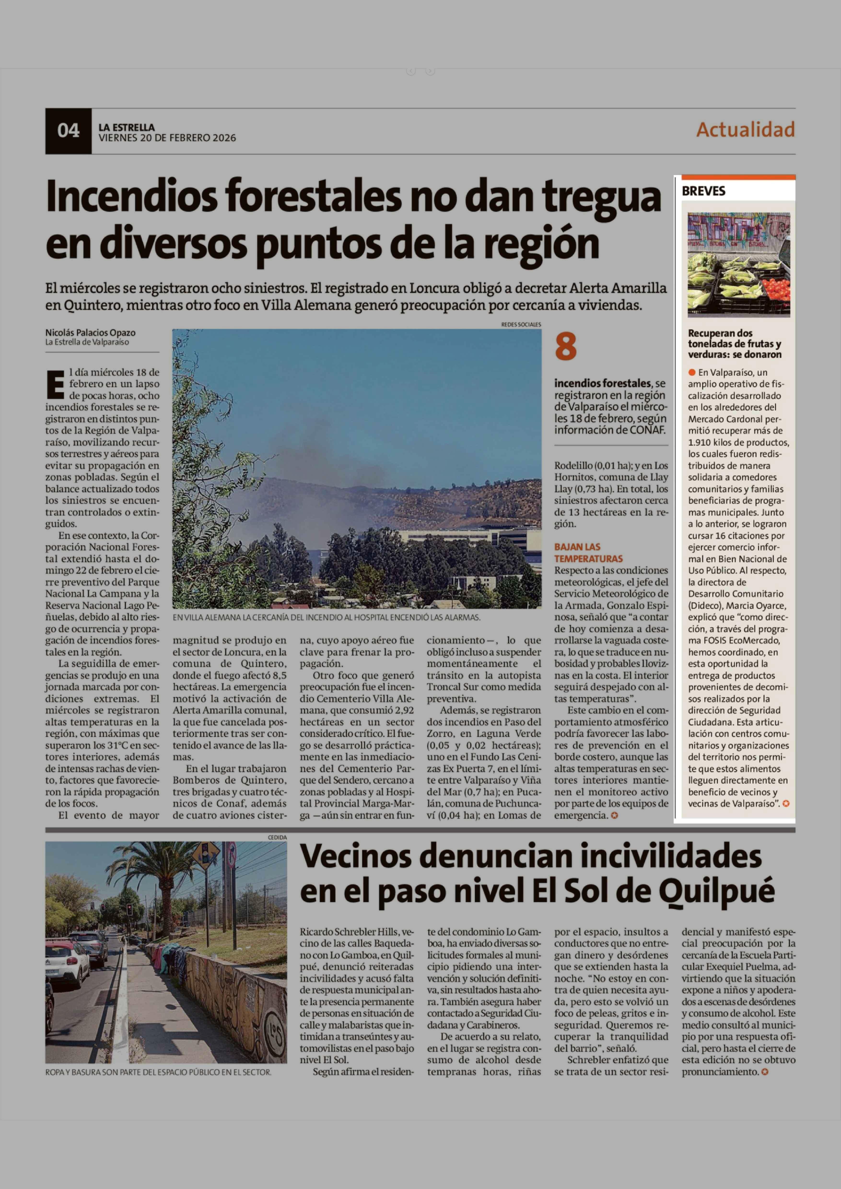 Recuperan dos toneladas de frutas y verduras: se donaron 20-02-2026 La Estrella de Valparaíso |