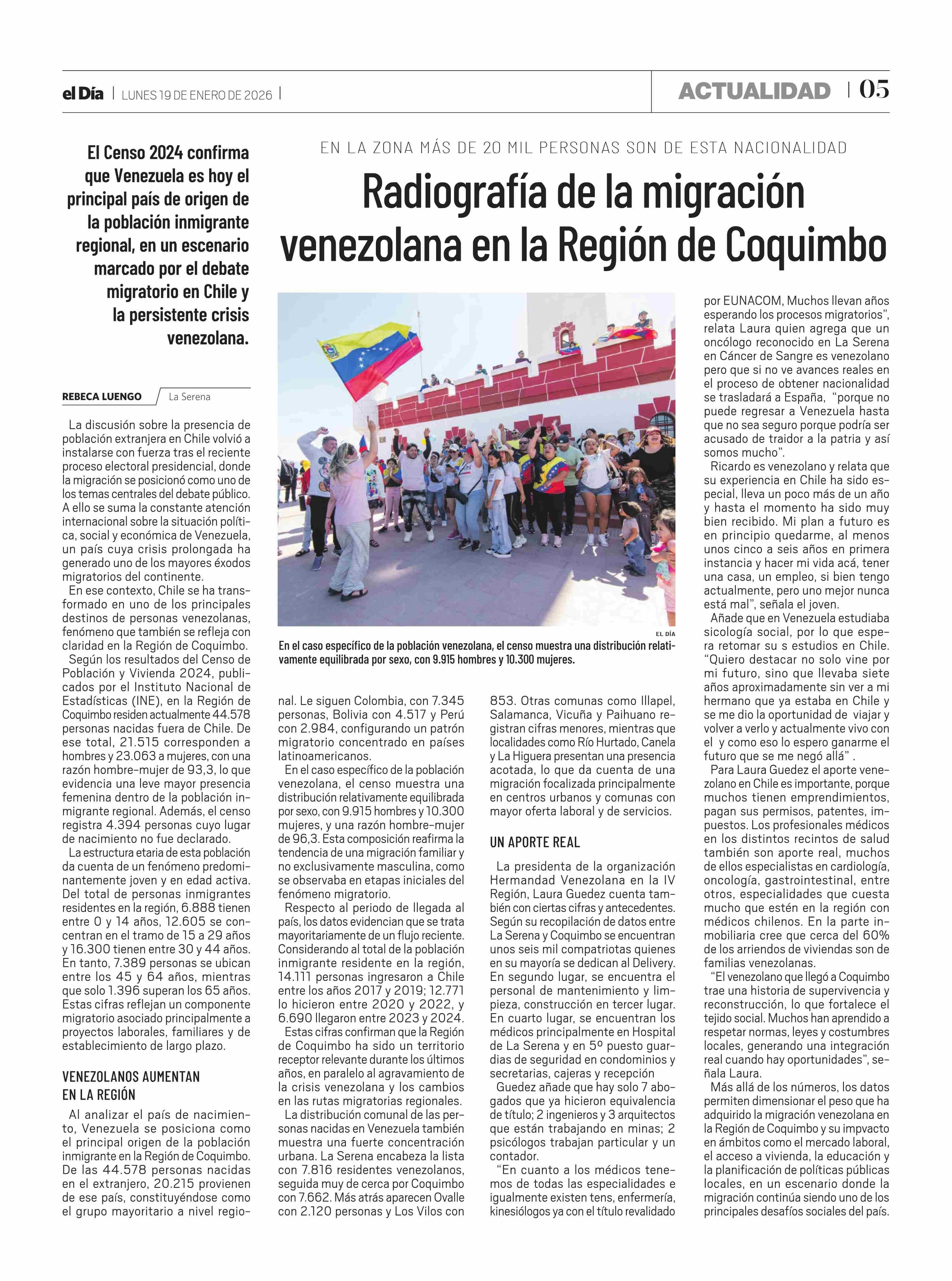 Radiografía de la migración venezolana en la Región de Coquimbo 19-01-2026 El Día |