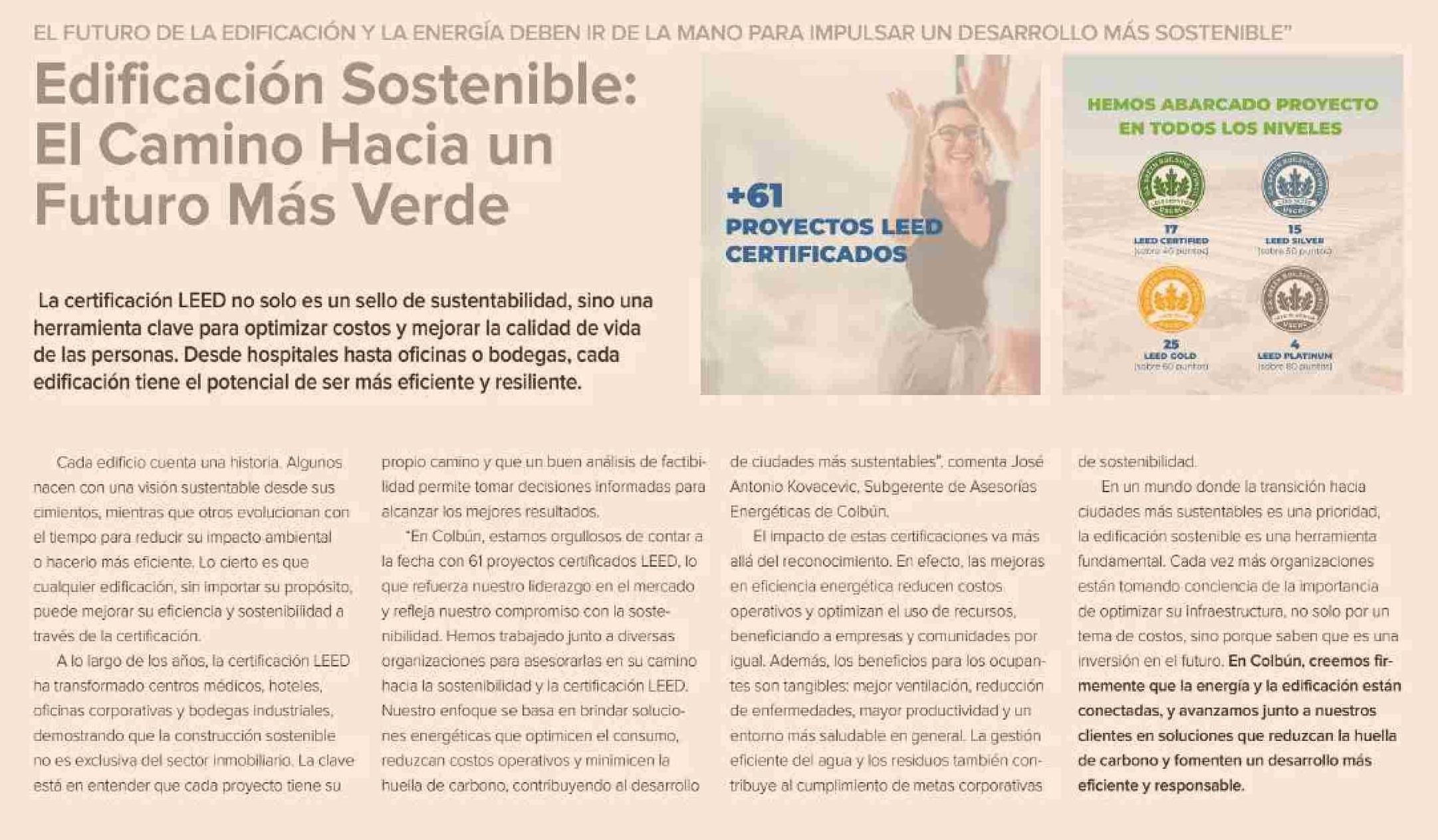 Edificación Sostenible: El Camino Hacia un Futuro Más Verde 27-03-2025 Diario Financiero |