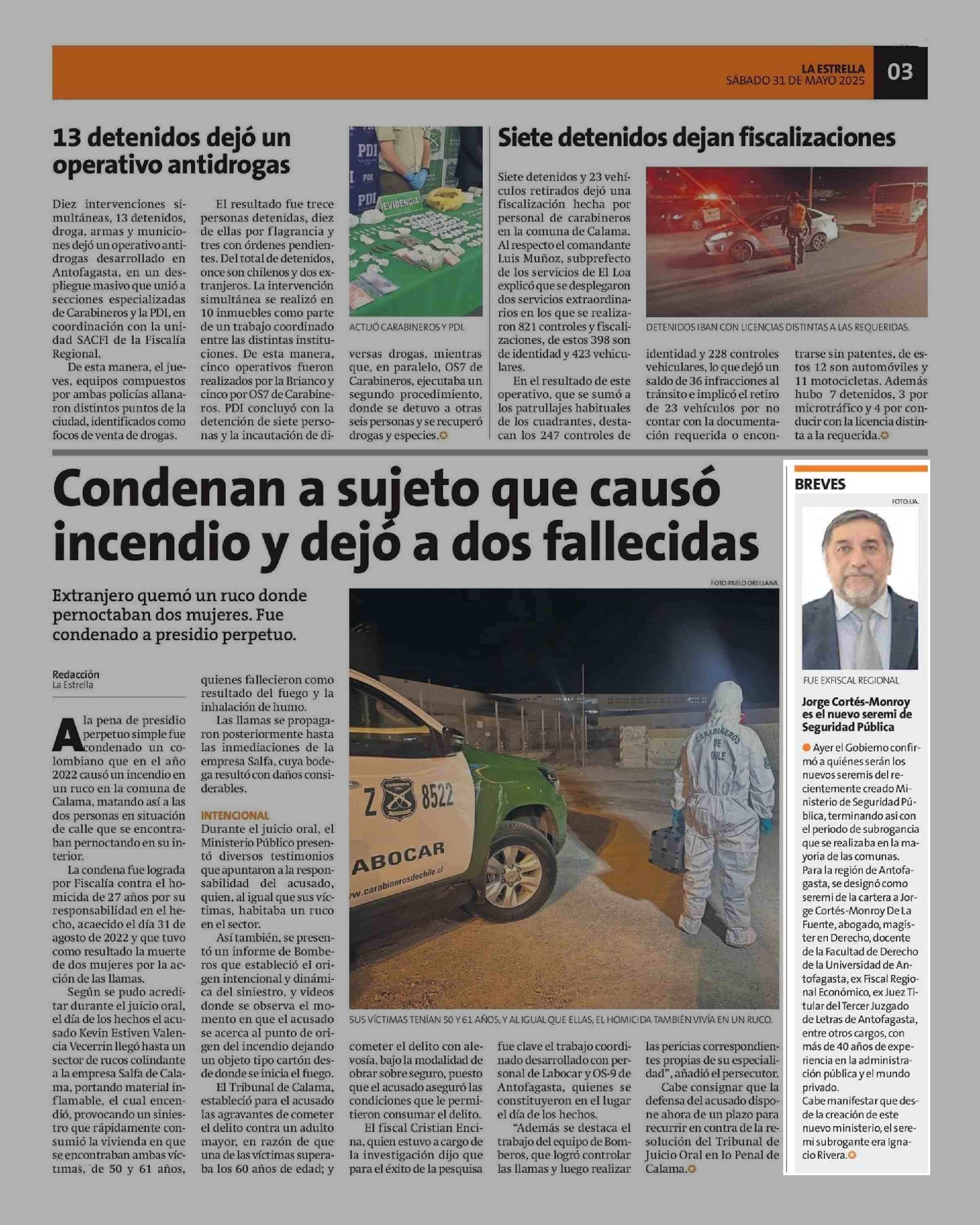 Jorge Cortés-Monro es el nuevo seremi Seguridad Pública 31-05-2025 La Estrella de Antofagasta |