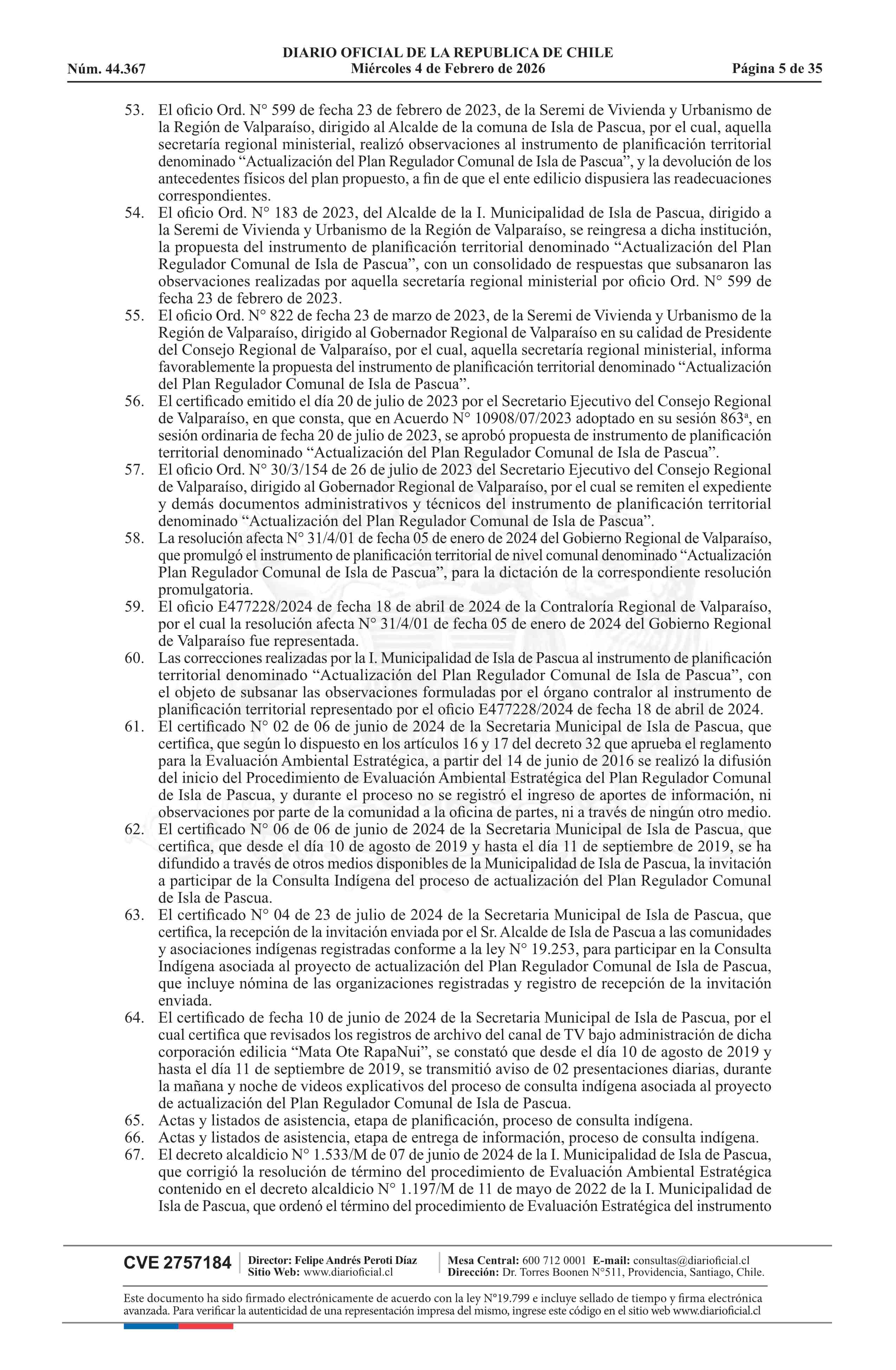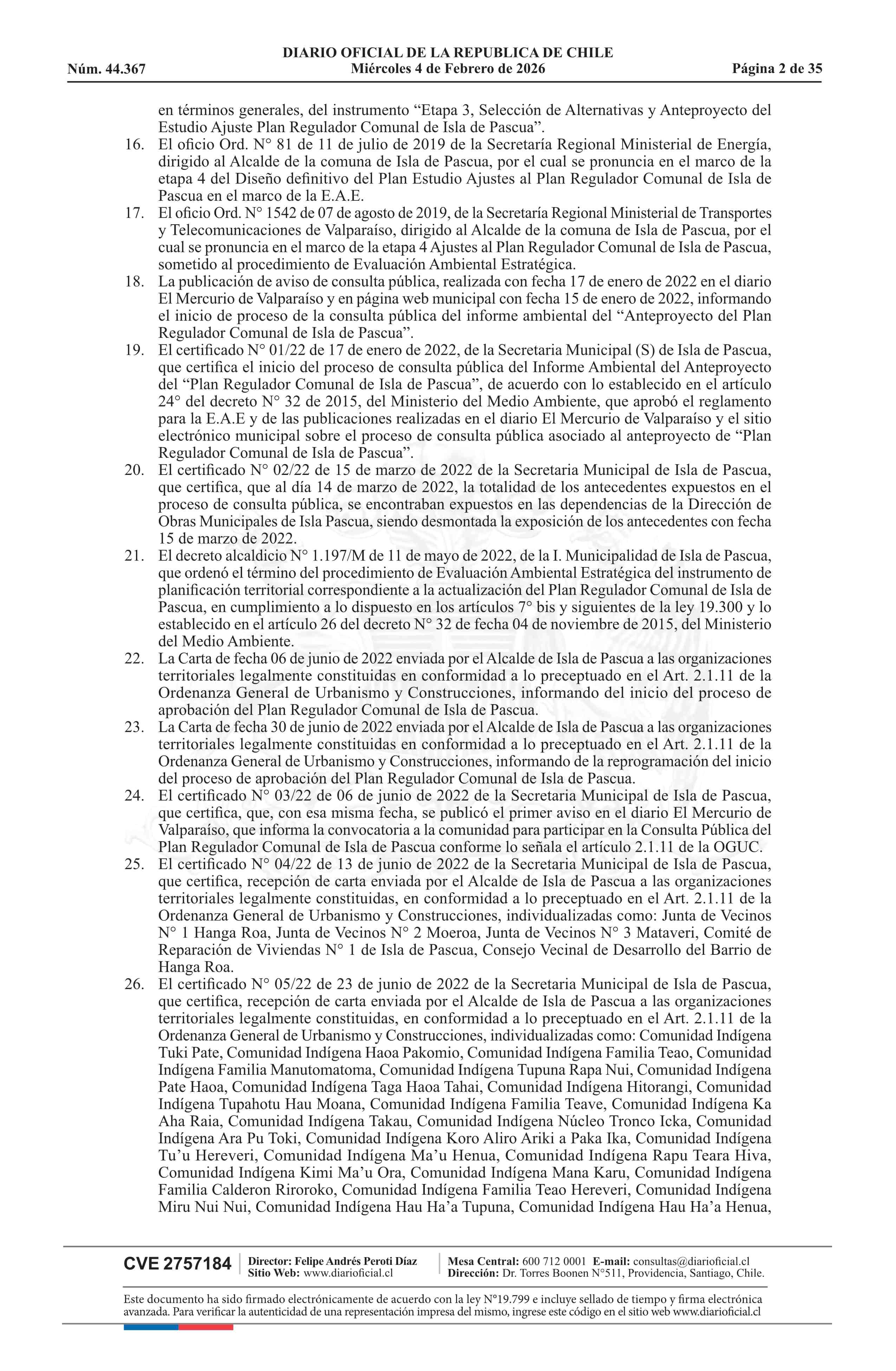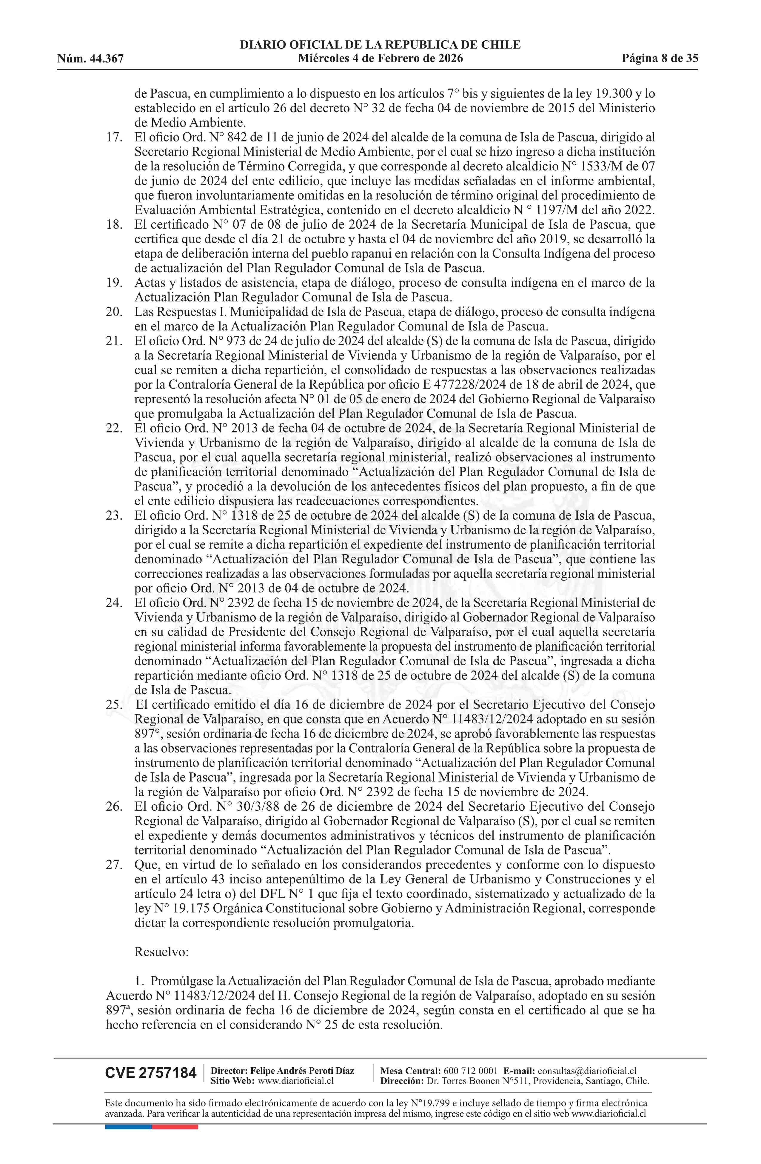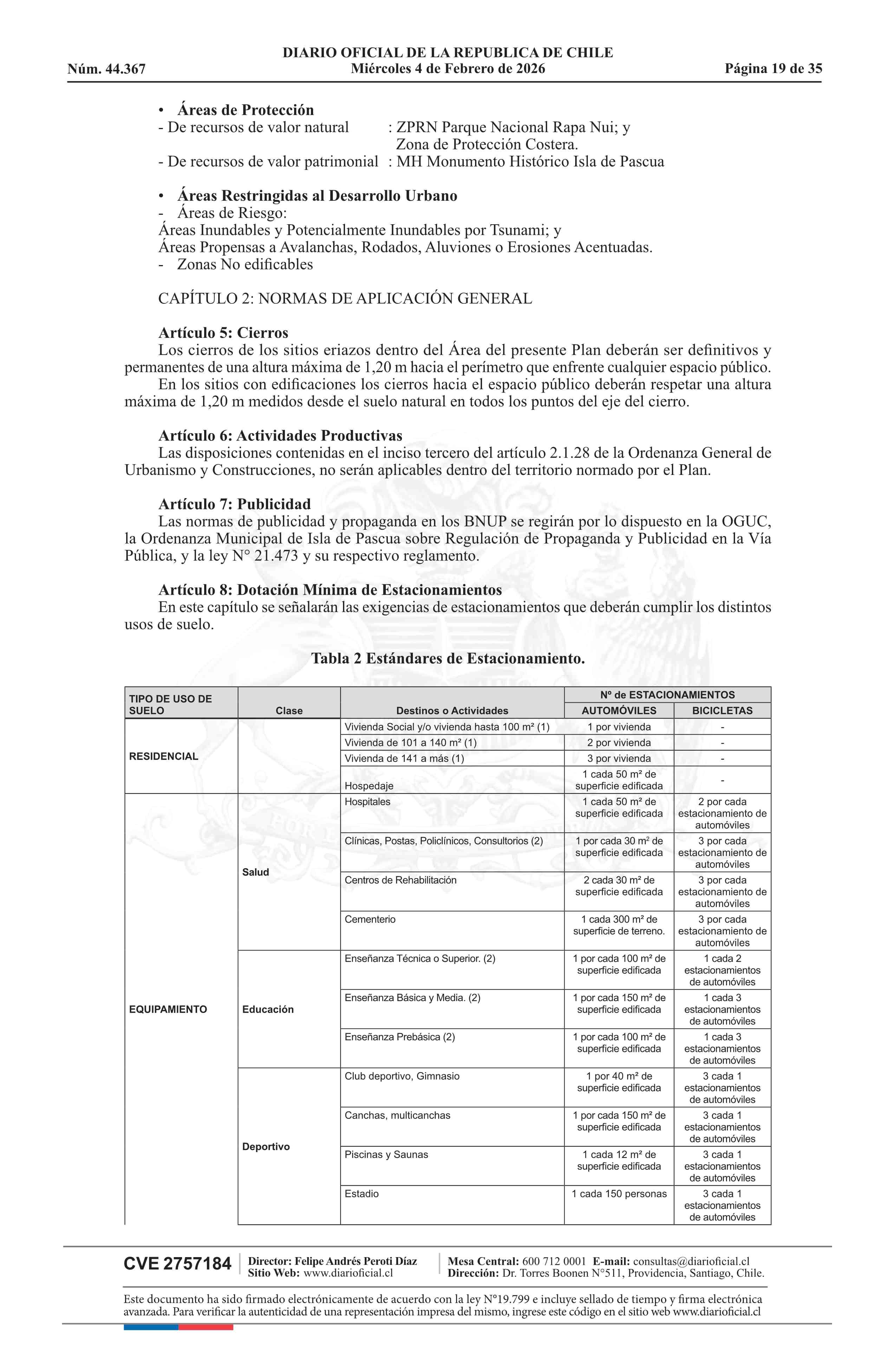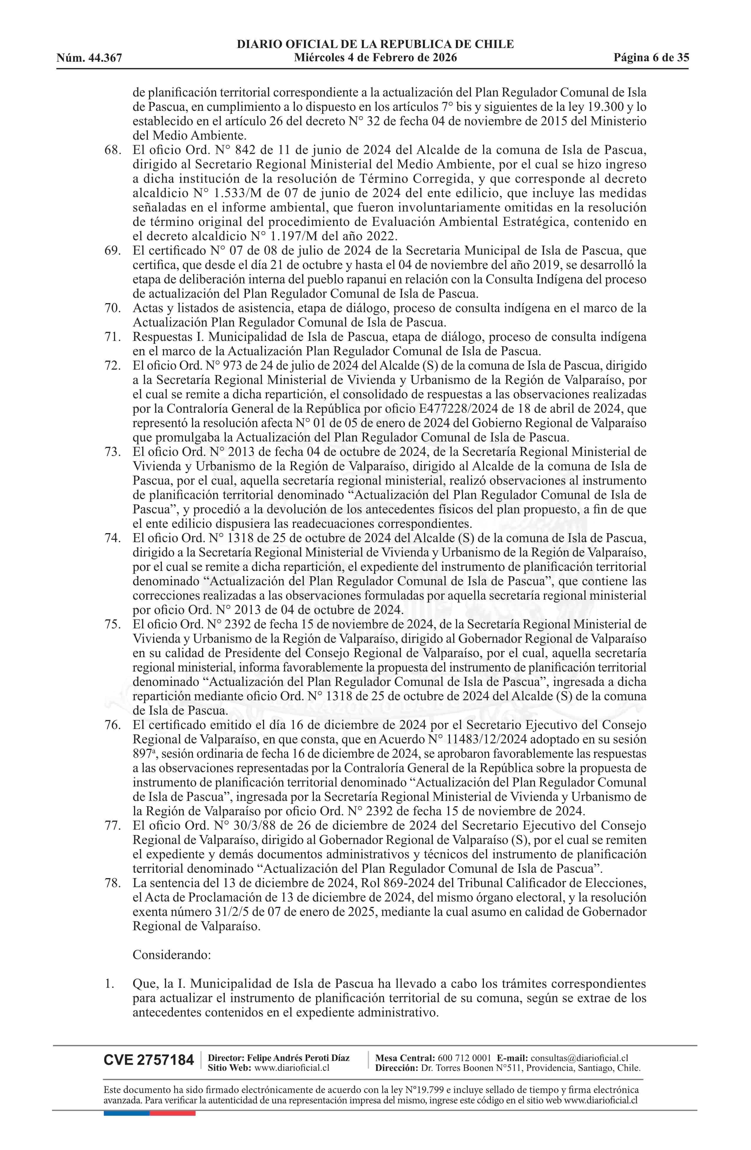 Resolución número 26, de 2025.- Promulga actualización del Plan Regulador Comunal de Isla de Pascua 04-02-2026 Diario Oficial Edición Electrónica |