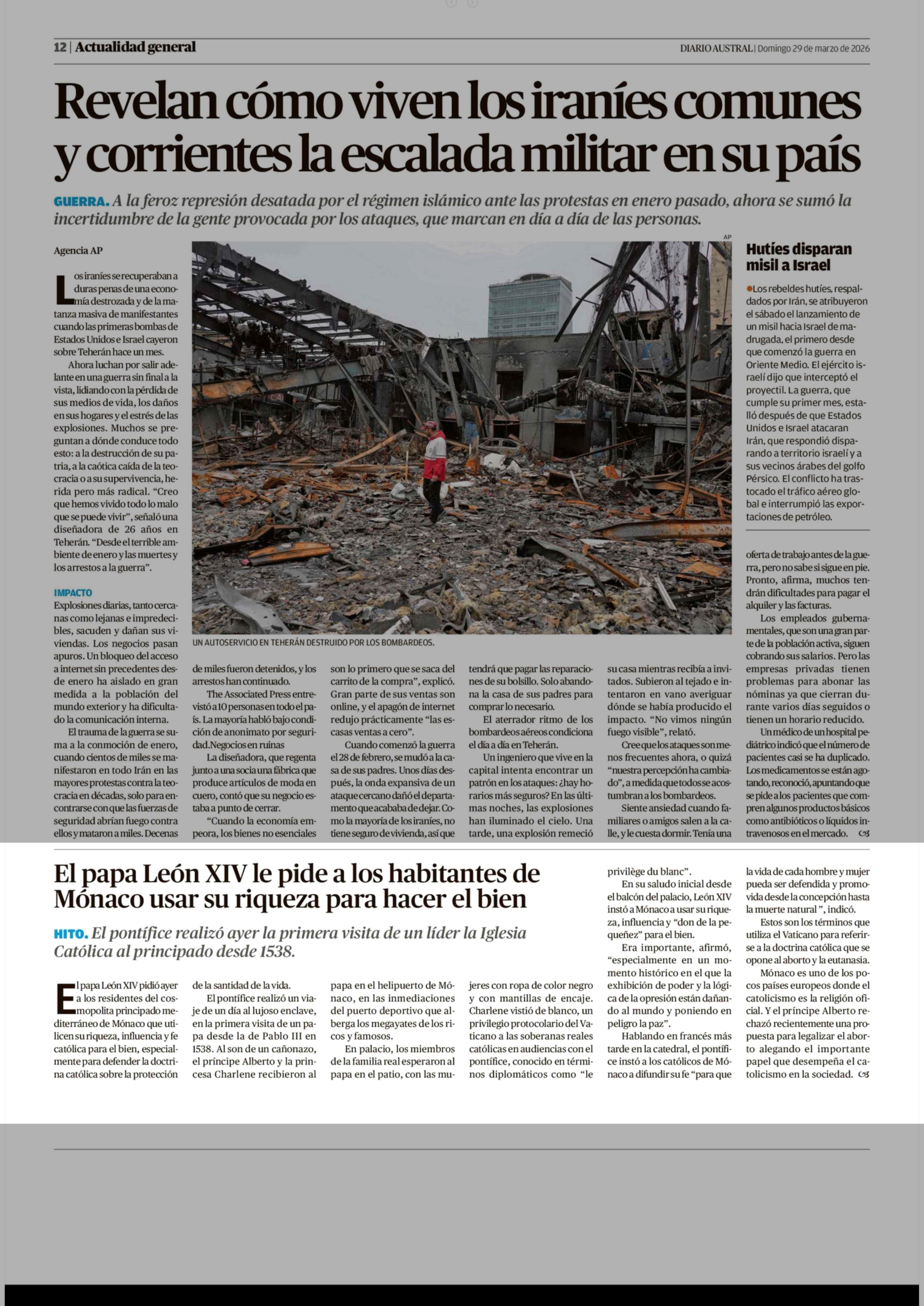 El papa León XIV le pide a los habitantes de Mónaco usar su riqueza para hacer el bien 29-03-2026 Diario Austral Región de Los Ríos |