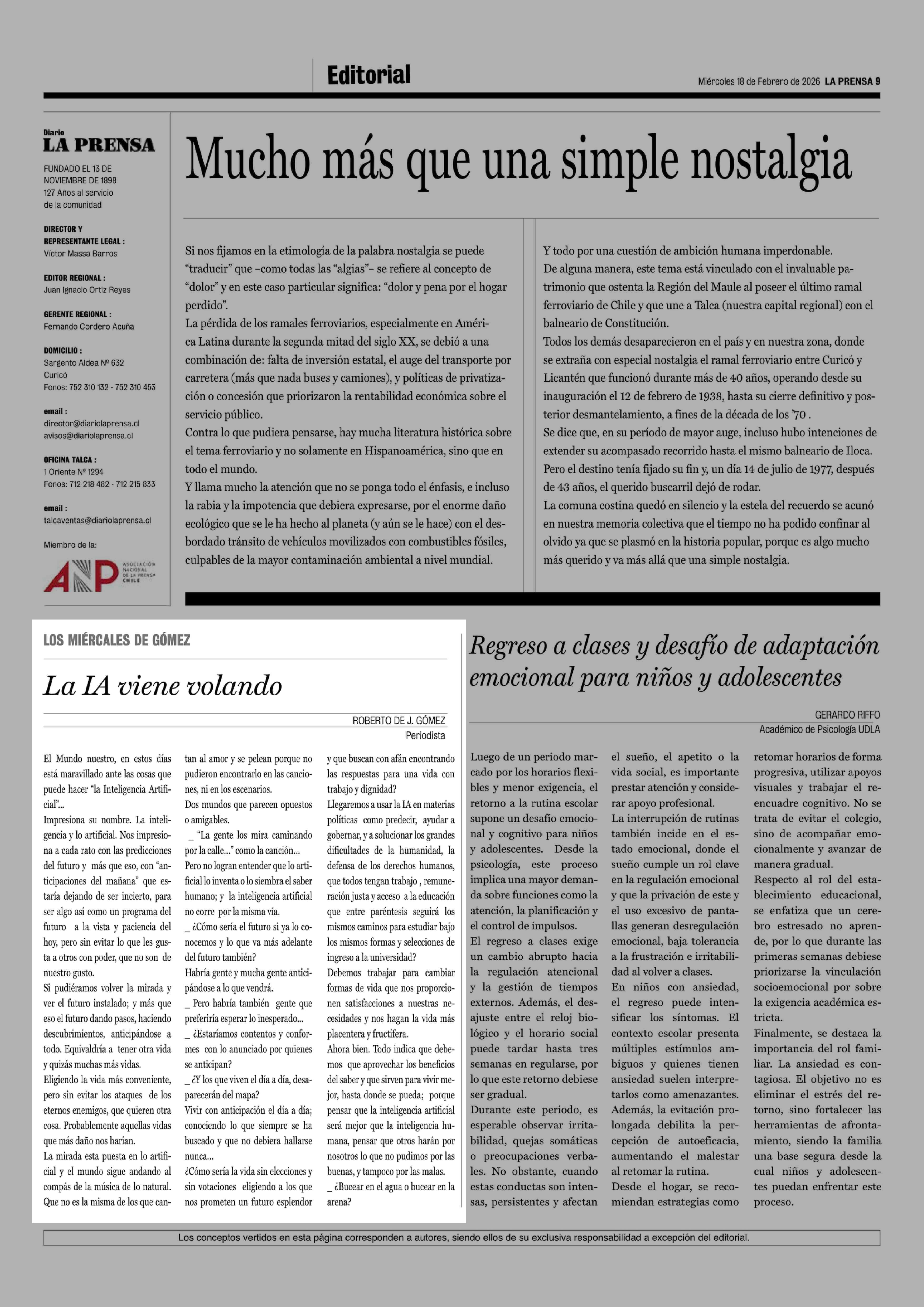 18-02-2026 La Prensa de Curicó