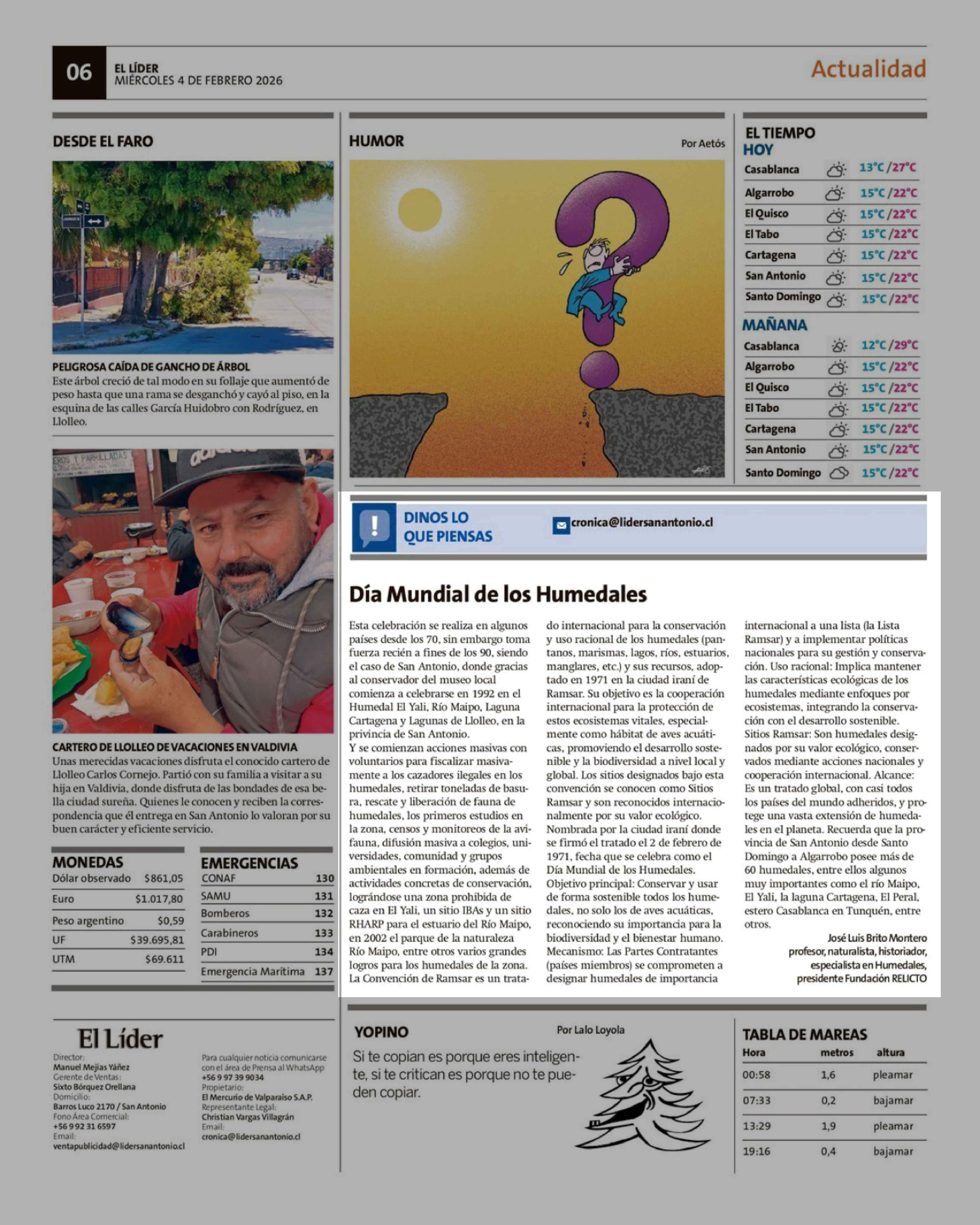 Cartas: Día Mundial de los Humedales 04-02-2026 El Líder |