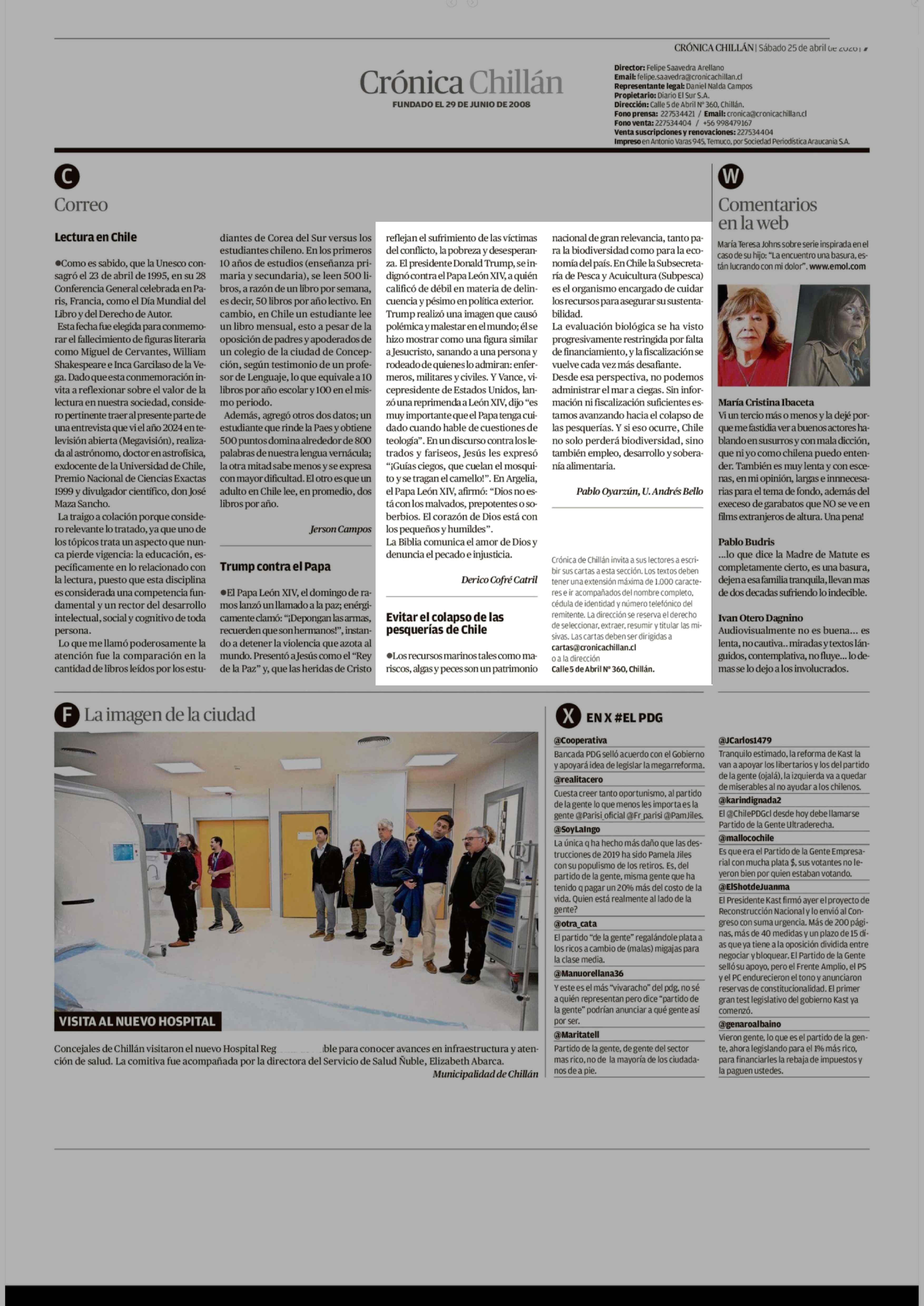 Cartas: Evitar el colapso de las pesquerías de Chile 25-04-2026 Crónica de Chillán |