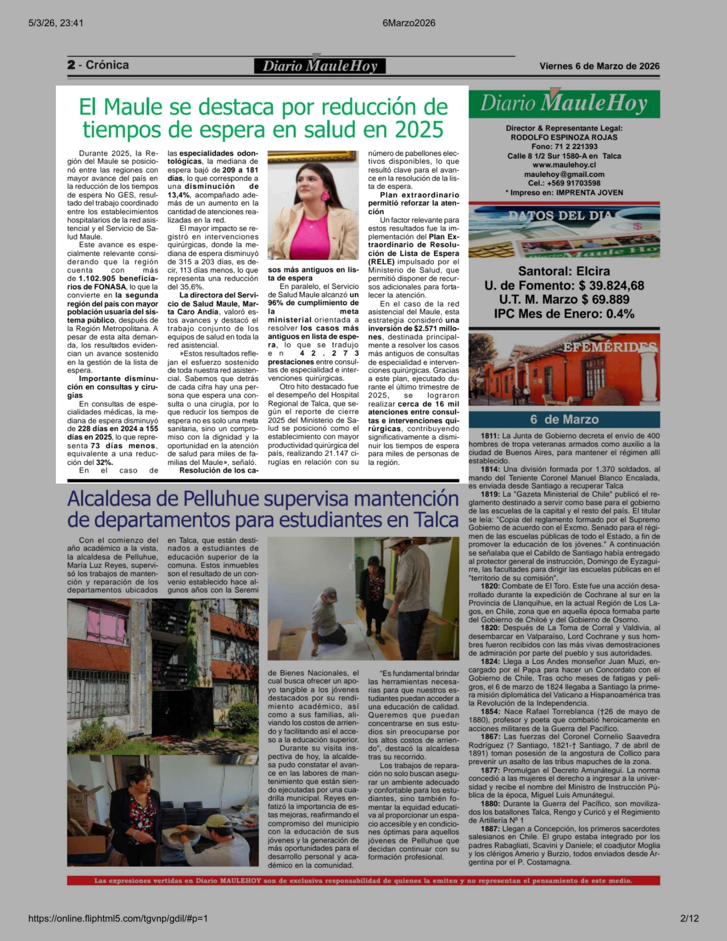 Fuente: Maule Hoy (Maule Hoy) Página(s): 2