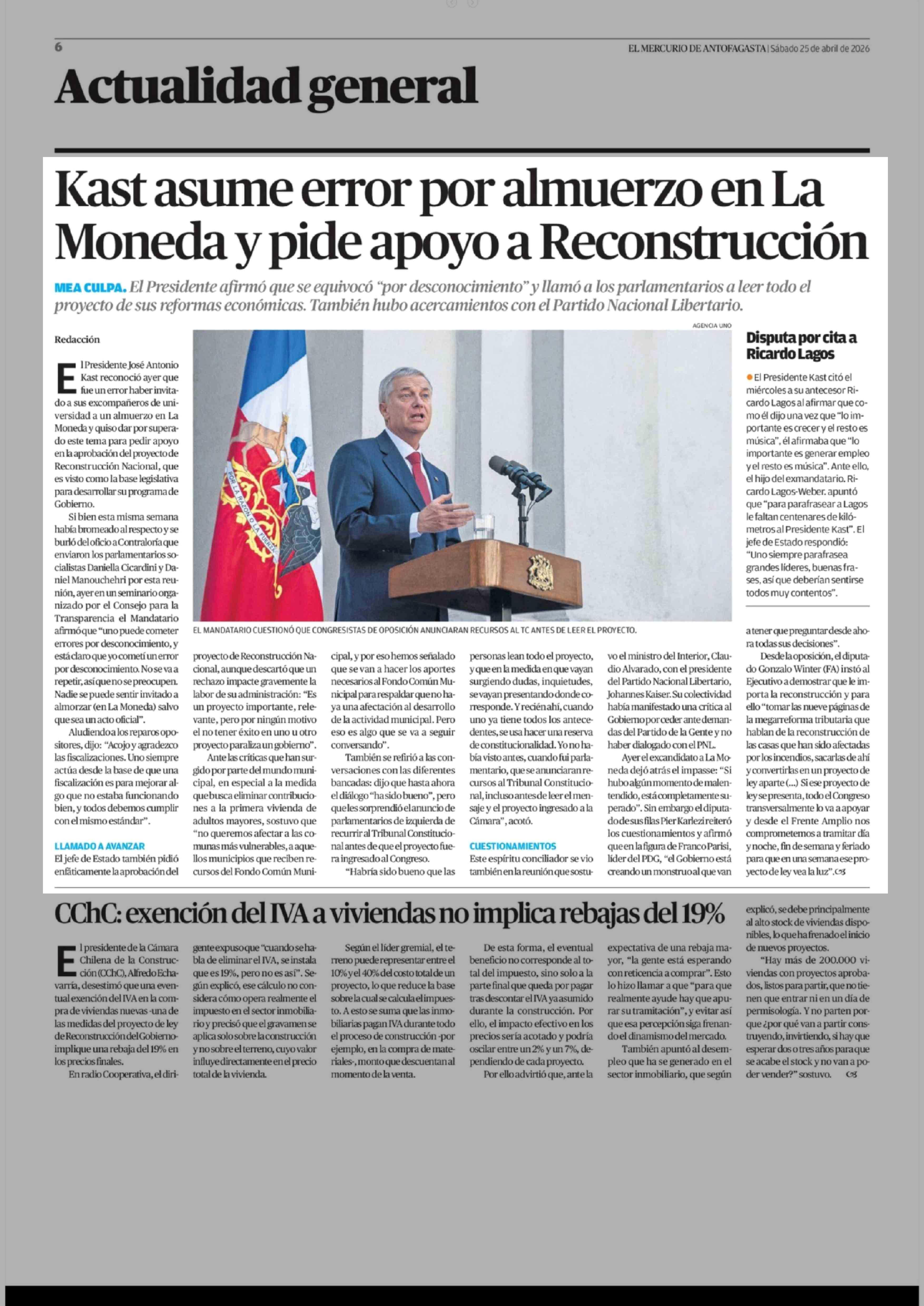 Fuente: El Mercurio de Antofagasta (El Mercurio de Antofagasta) Página(s): 6
