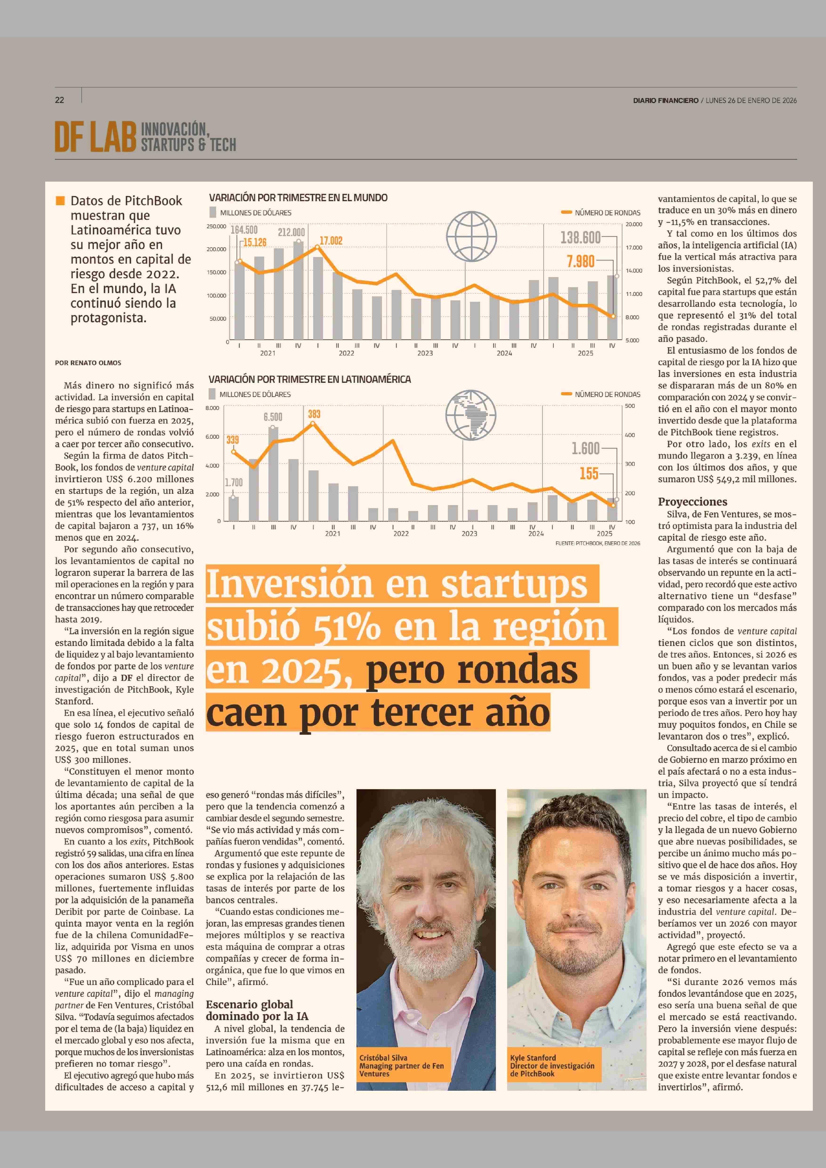 Inversión en startups subió 51% en la región en 2025, pero rondas caen por tercer año 26-01-2026 Diario Financiero |