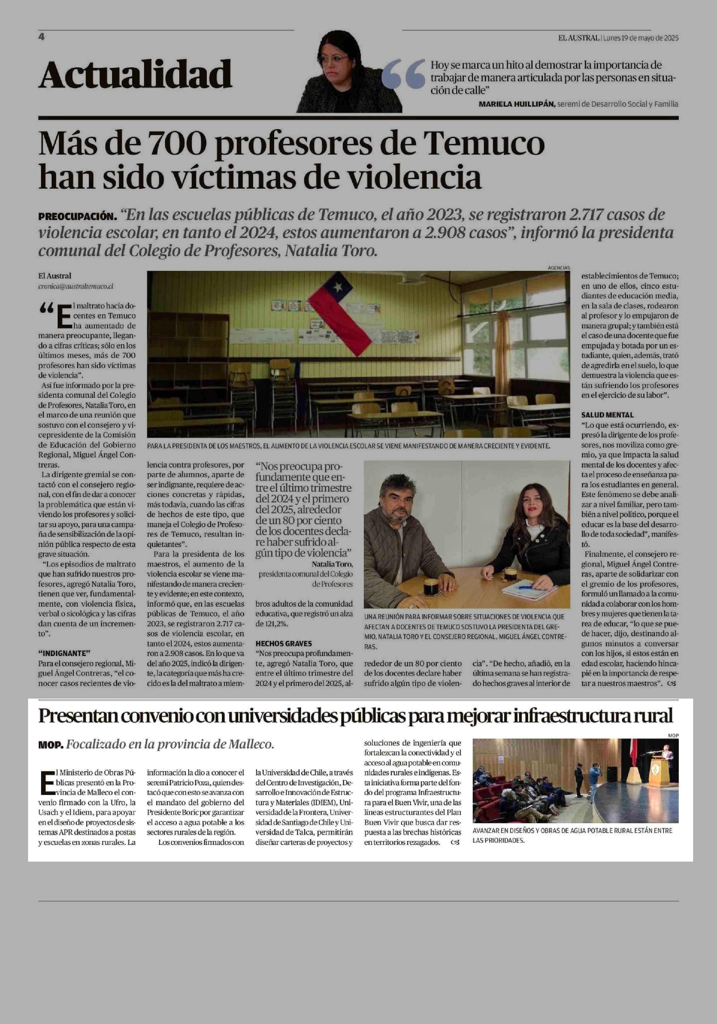 | Fecha: | 19-05-2025 | Sector: | Noticia general | Región: | Región de la Araucanía |