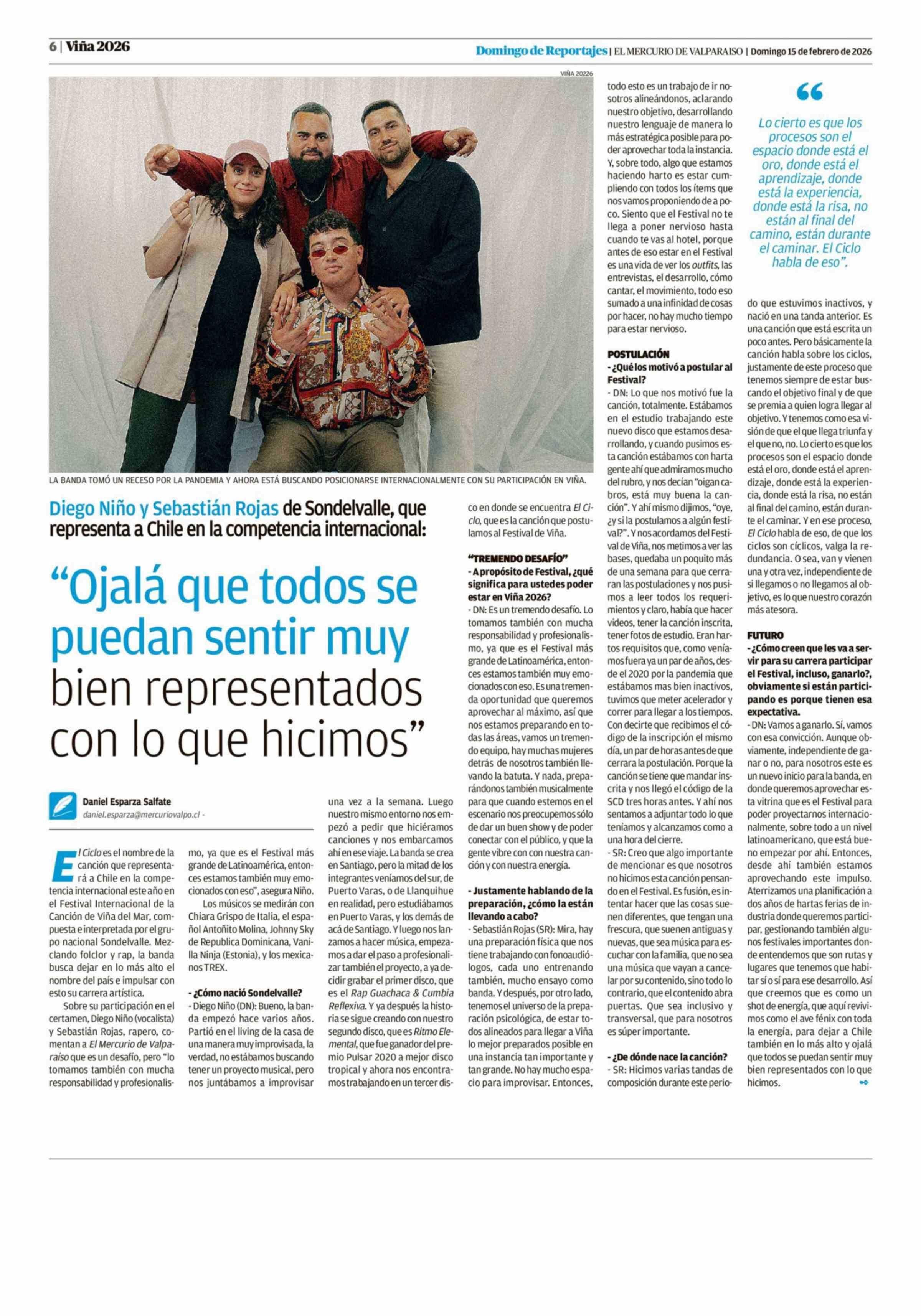 "Ojalá que todos se puedan sentir muy bien representados con lo que hicimos" 15-02-2026 El Mercurio de Valparaíso |