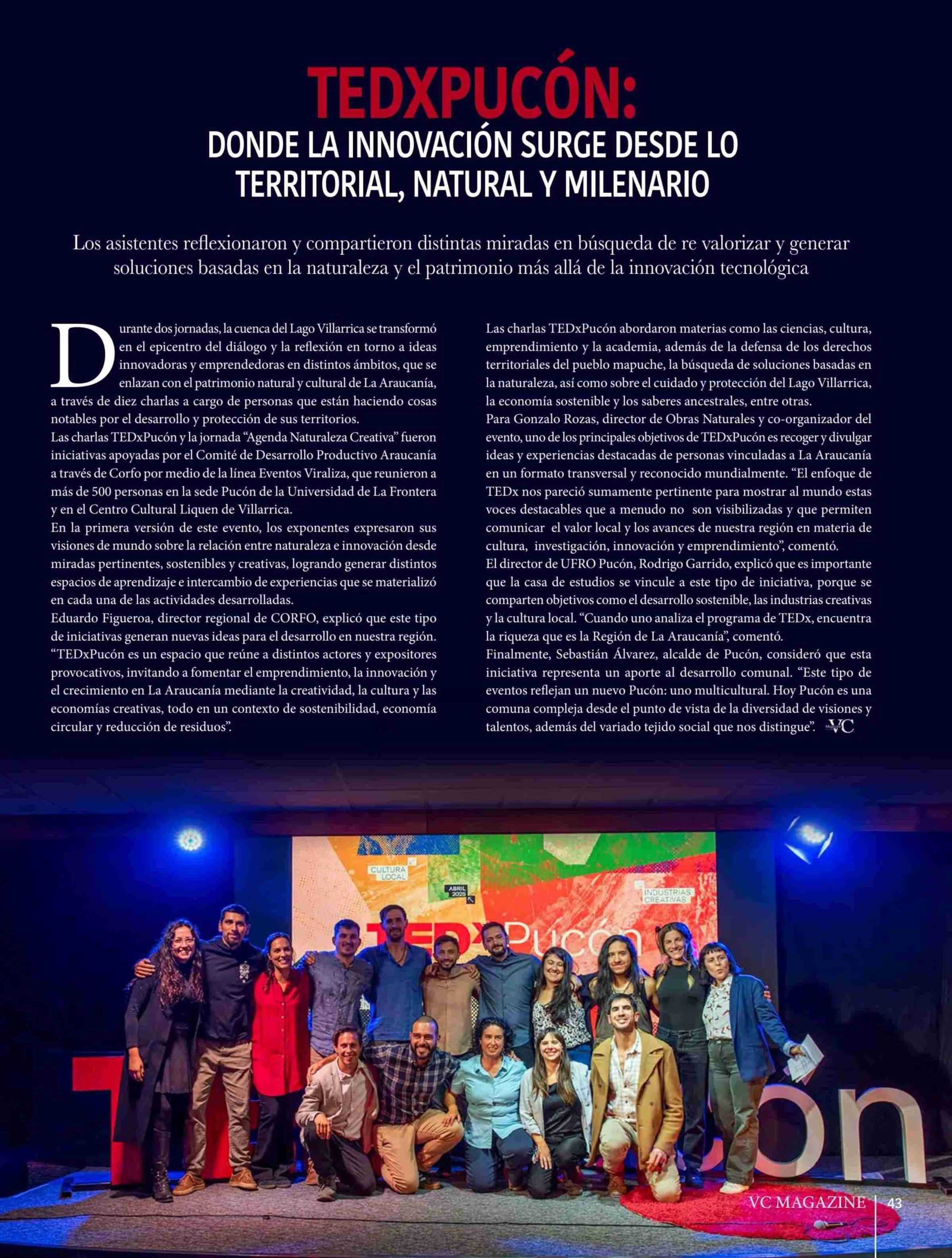 TEDXPUCÓN DONDE LA INNOVACIÓN SURGE DESDE LO TERRITORIAL, NATURAL Y MILENARIO 23-05-2025 Revista vcmagazine |