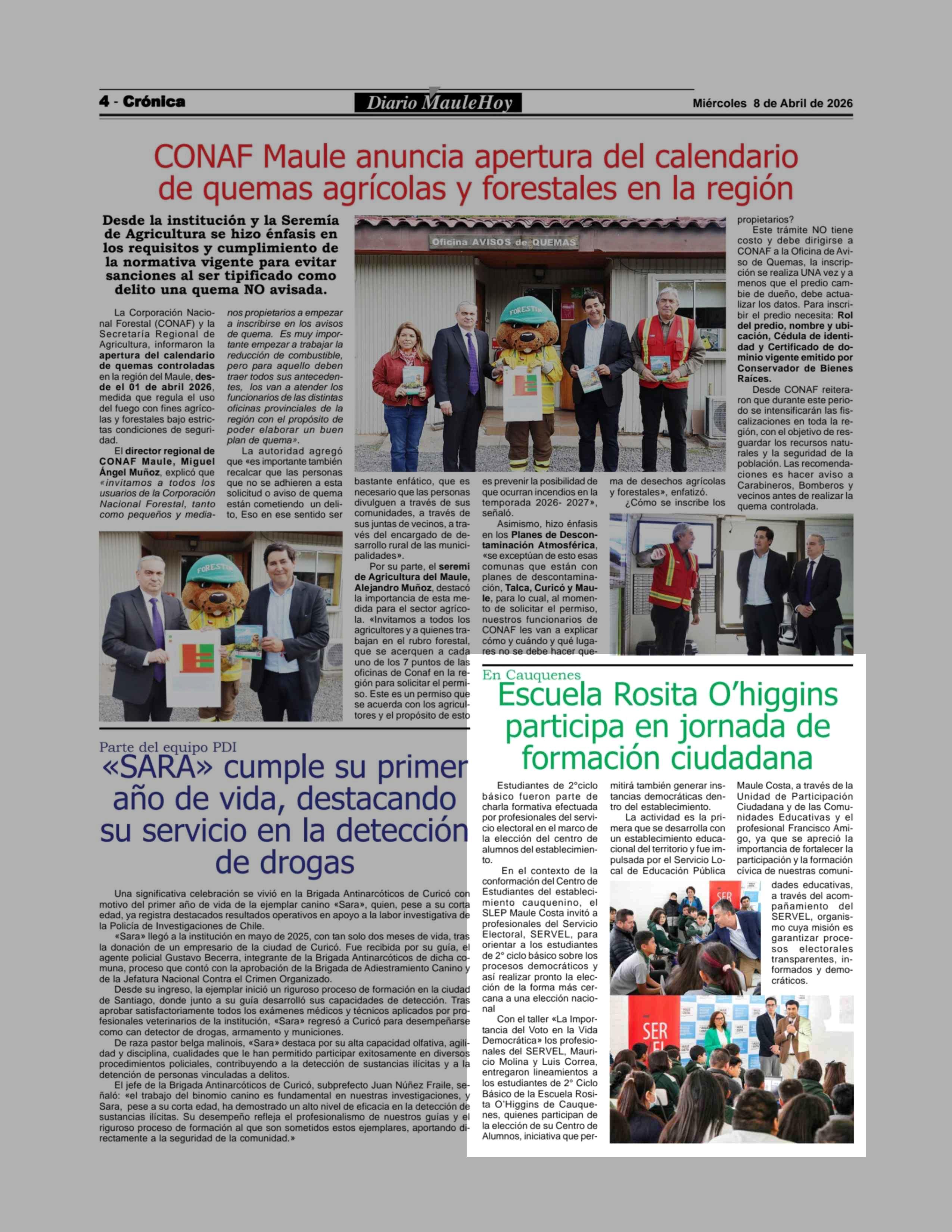 | Fecha: | 08-04-2026 | Sector: | Noticia general | Región: | Región del Maule |
